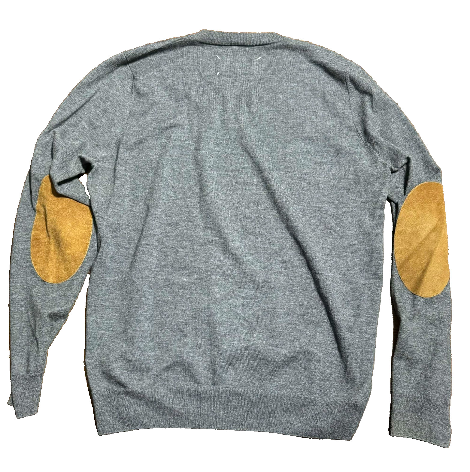 Maison Margiela Paris Gray Line 14 Suede Elbow Patch V Neck Wool Sweater Size M