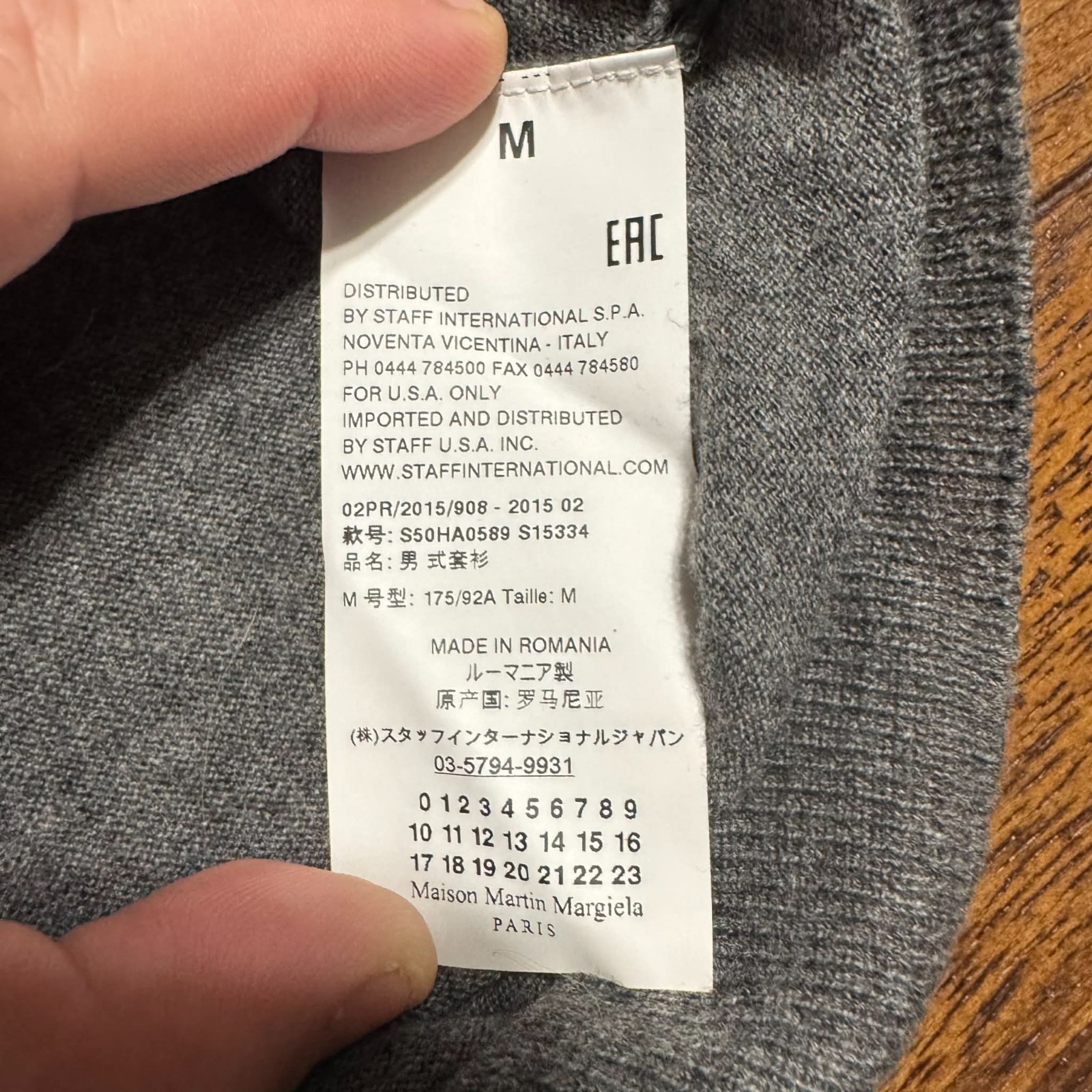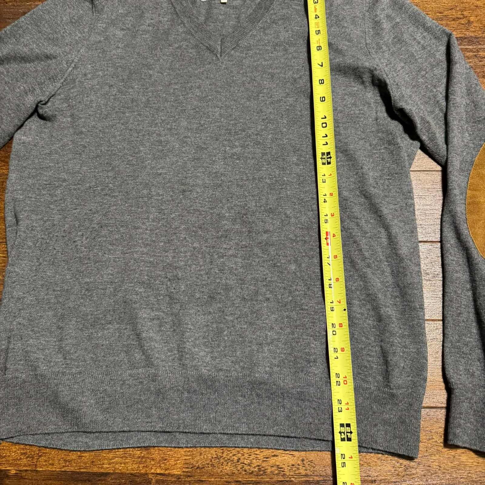 как выглядит Maison Margiela Paris Gray Line 14 Suede Elbow Patch V Neck Wool Sweater Size M фото