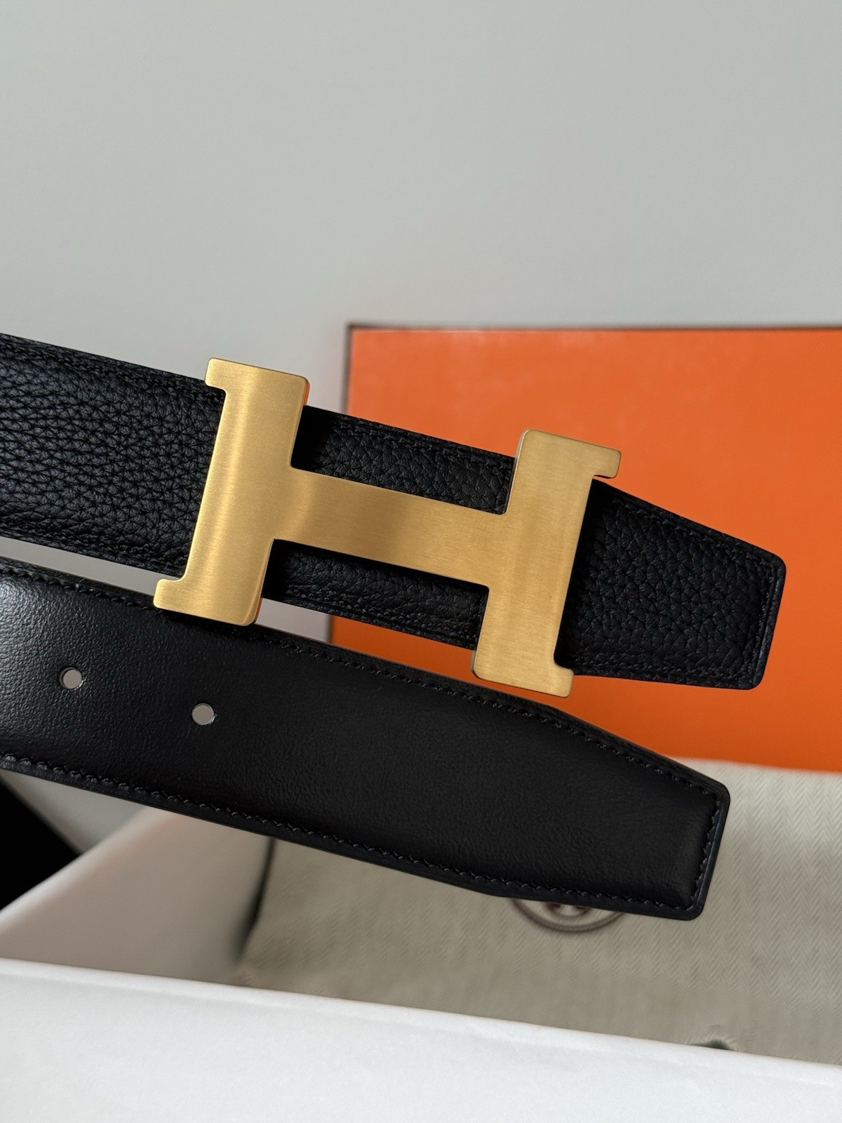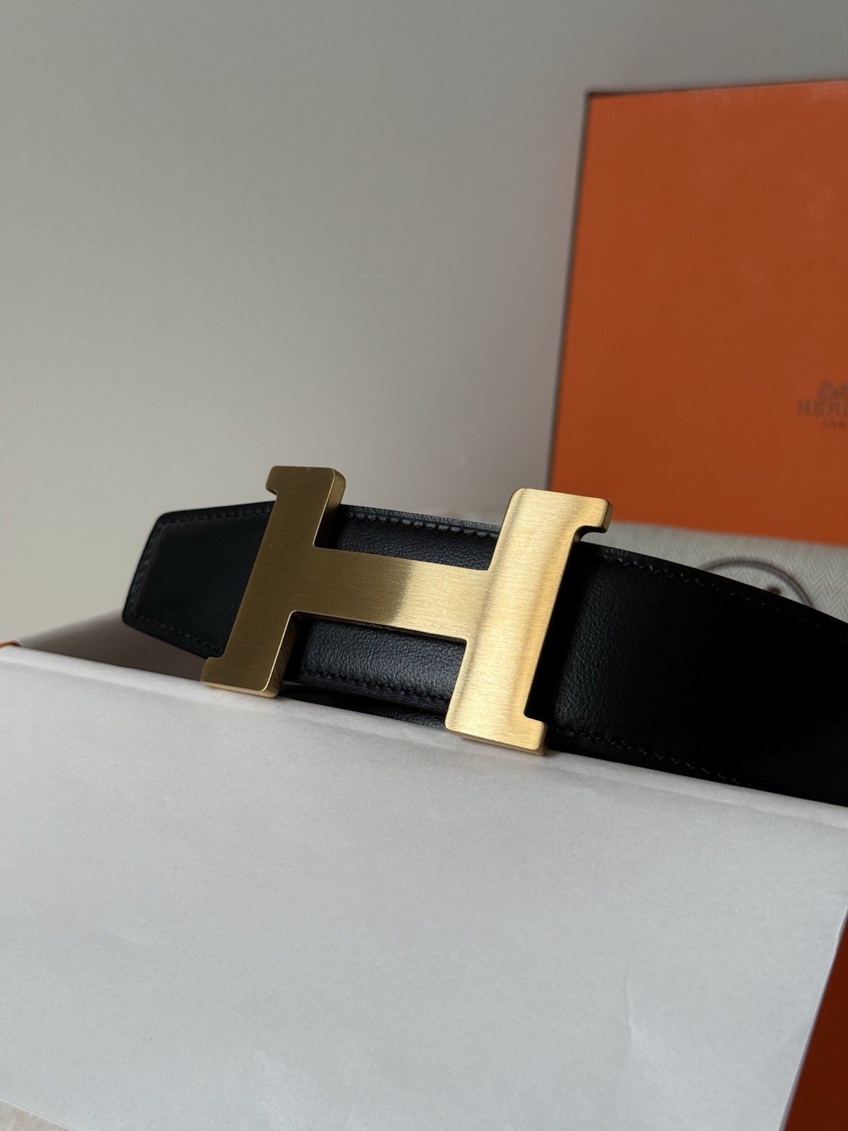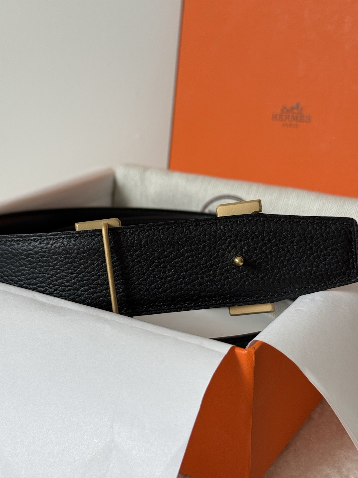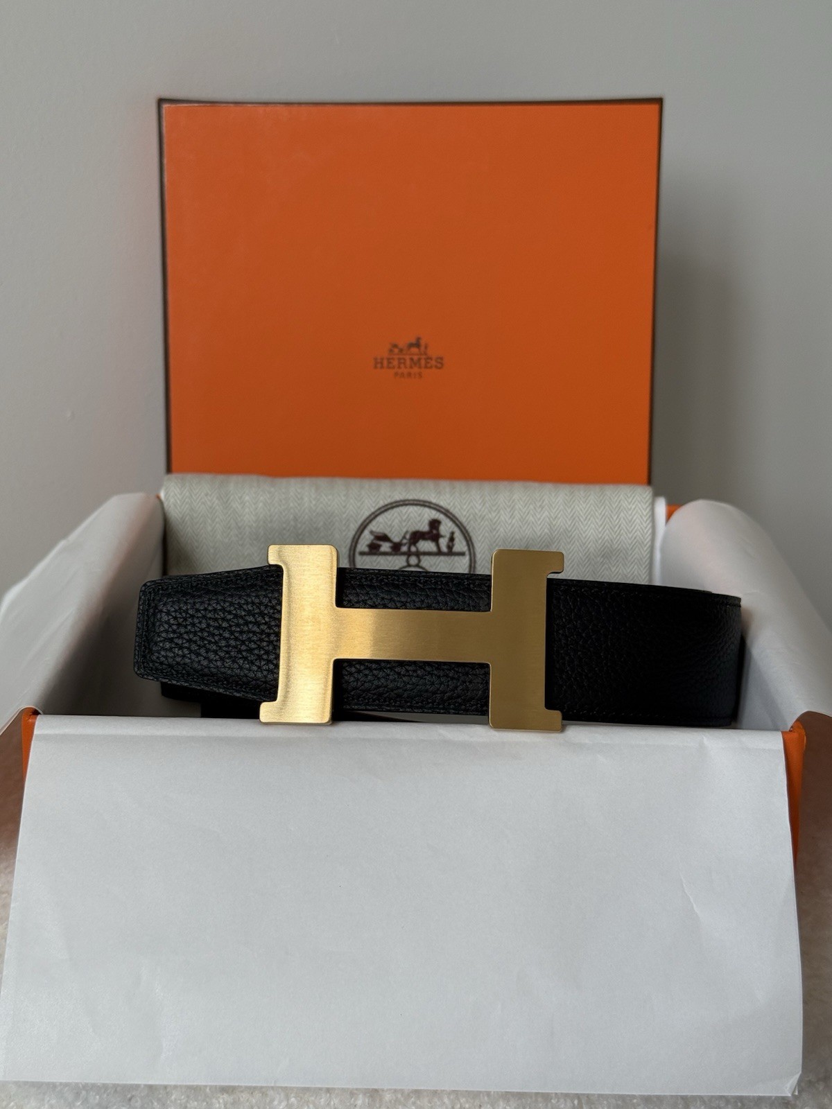 как выглядит Hermes Reversible Solid Black Belt Gold Buckle Size 100 Fits Mens Waist 36-38 фото
