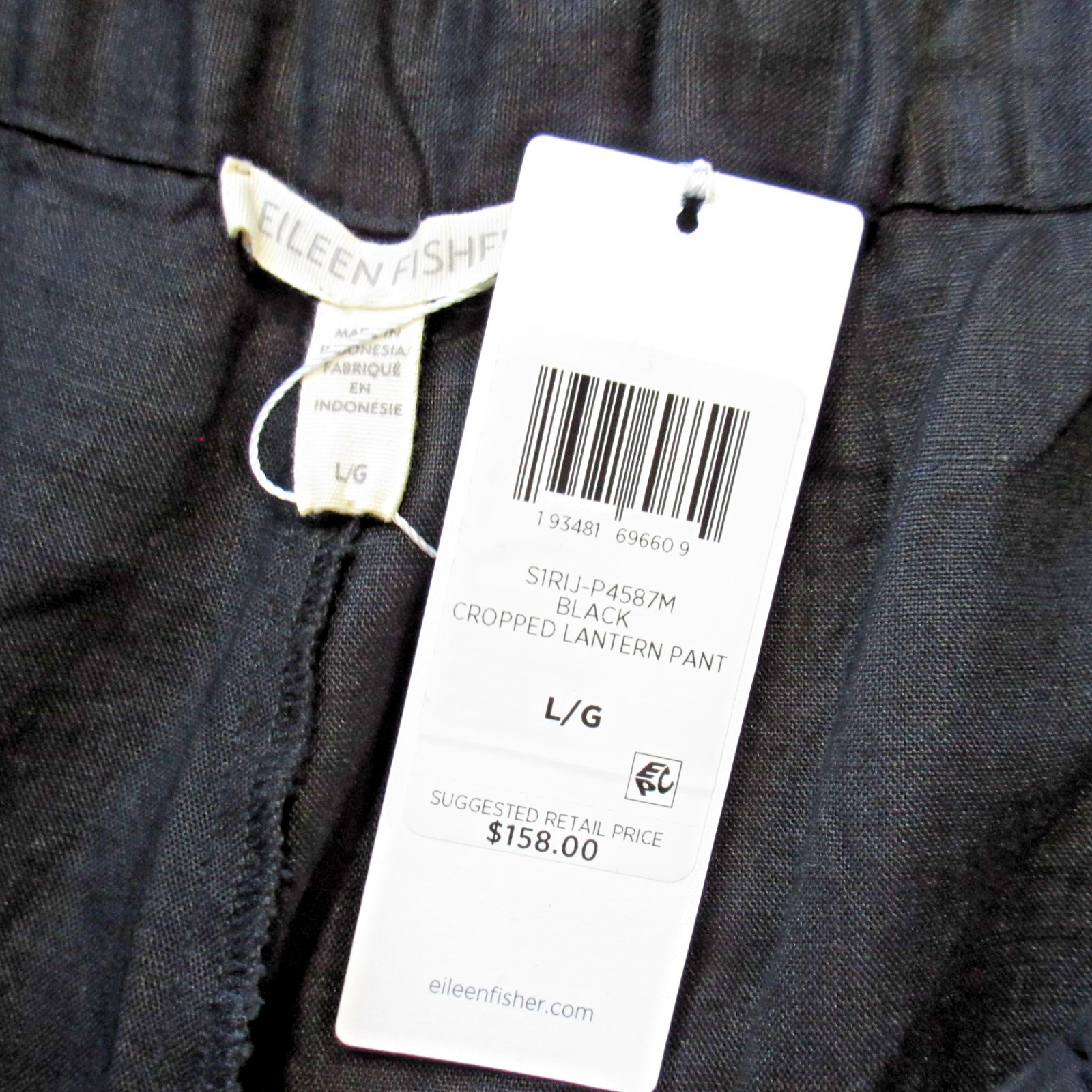 NWT Eileen Fisher Organic Linen Cropped Lantern in Black Pull-on Pants L