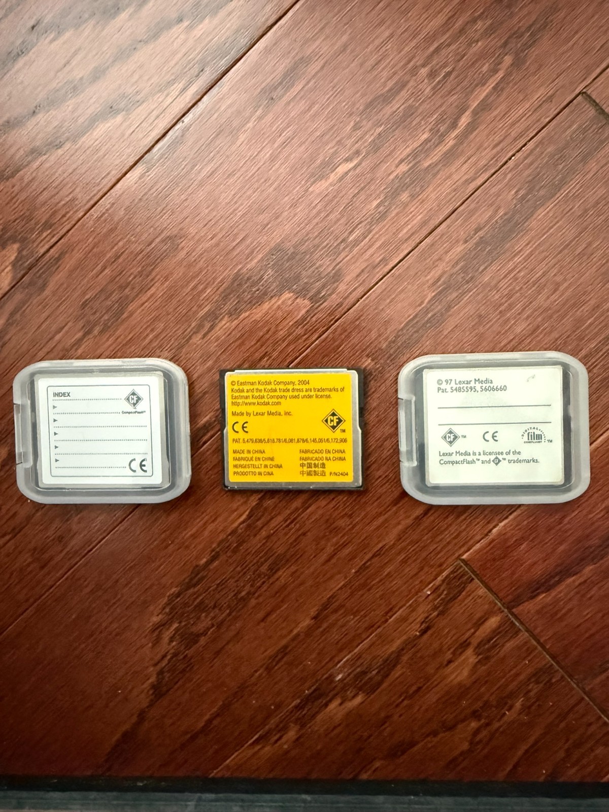 Set of three Compact Flash Cards: Lexar 16 MB, Toshiba 1GB, Kodak 1GB