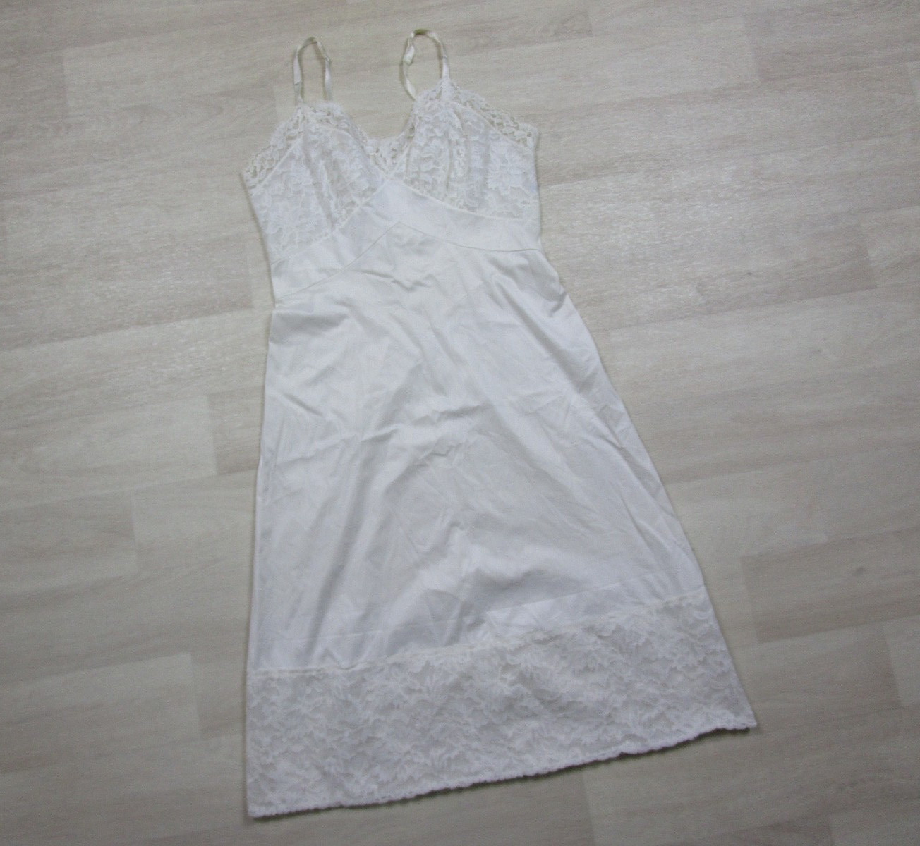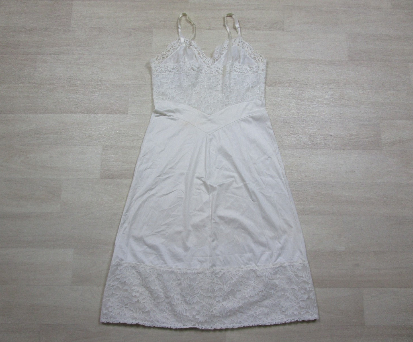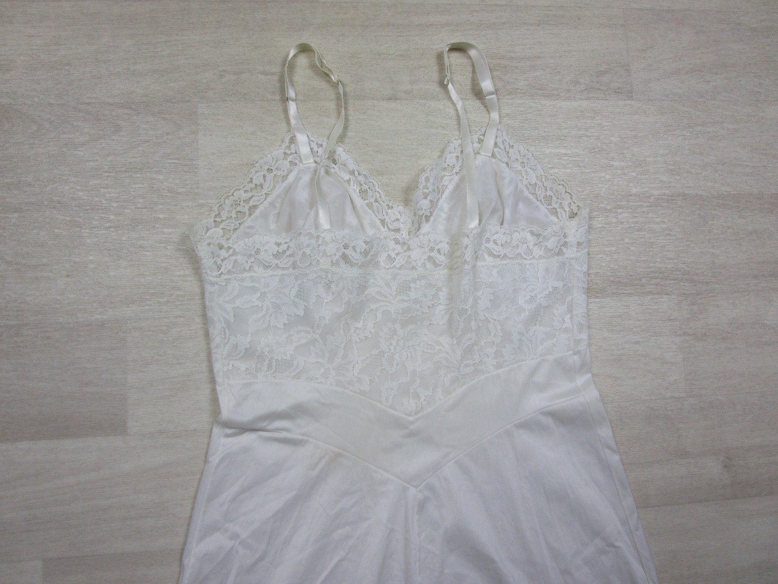 как выглядит Vintage 50s Vanity Fair Full Slip 34 Nylon Lace Bust Trim Bridal USA фото