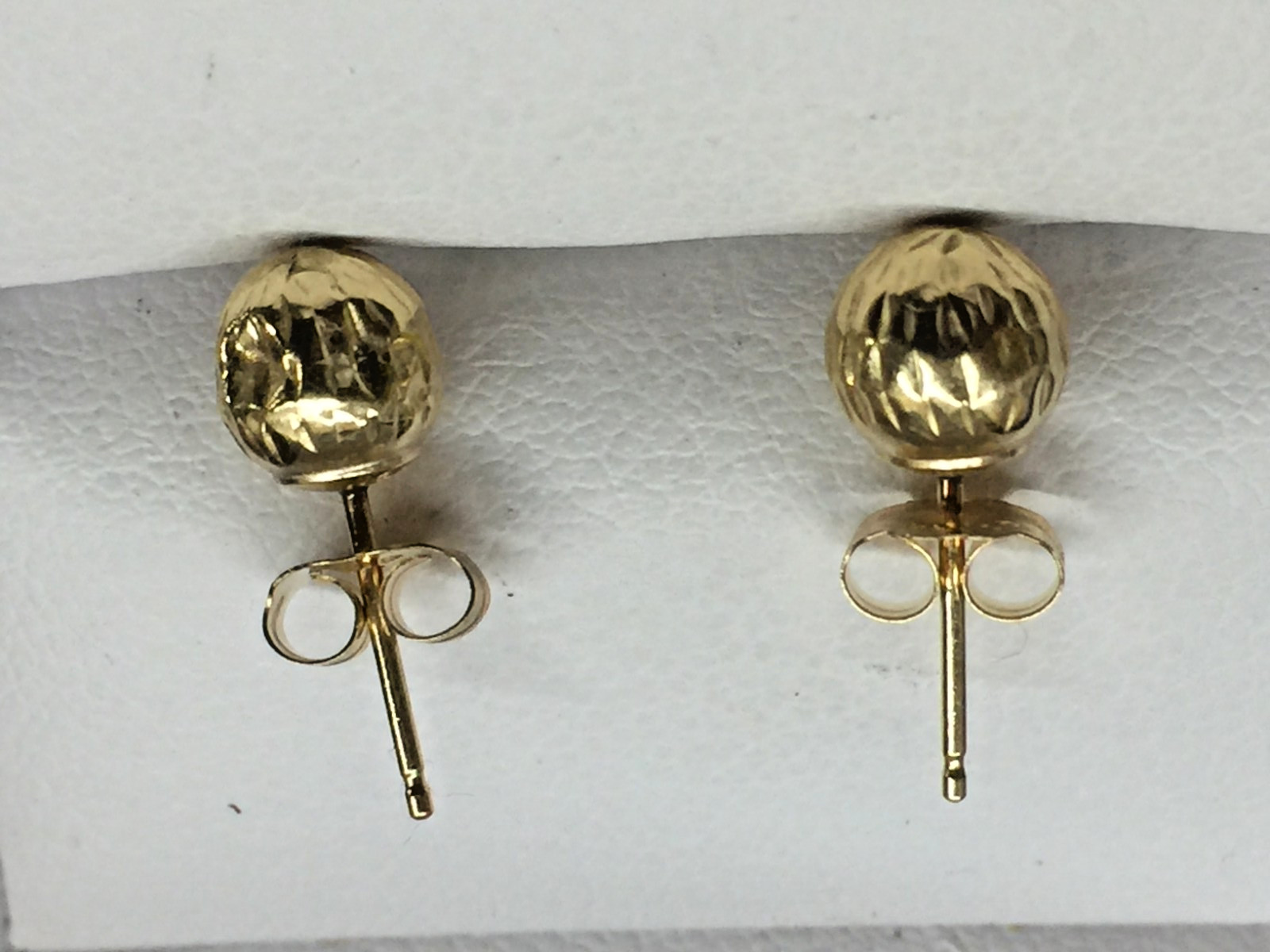 как выглядит 14K Yellow Gold 4mm Diamond Cut Round Bead Ball Stud Earrings фото