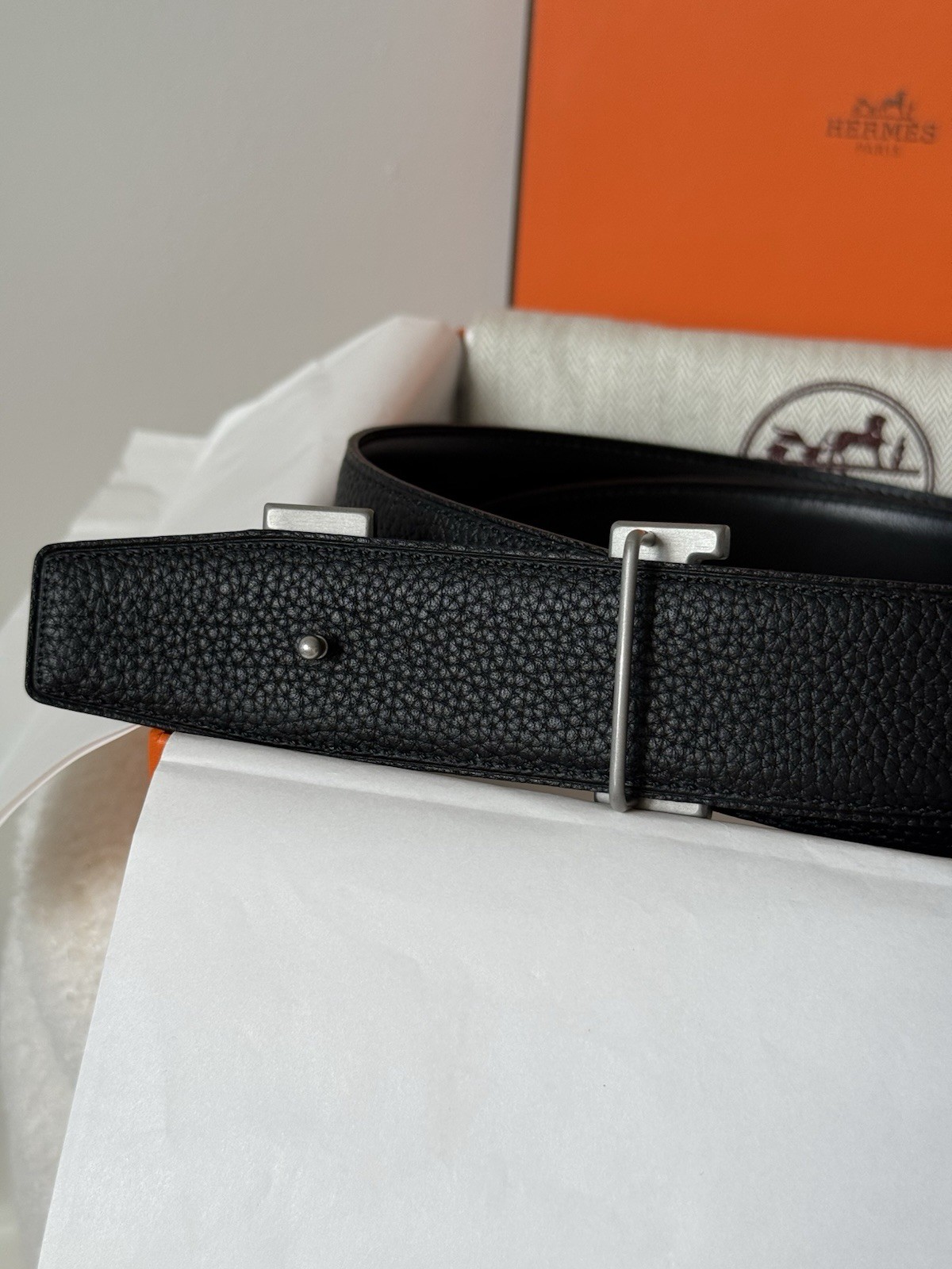 как выглядит Hermes Reversible Solid Black Belt Silver Buckle Size 95 Fits Mens Waist 34-36 фото