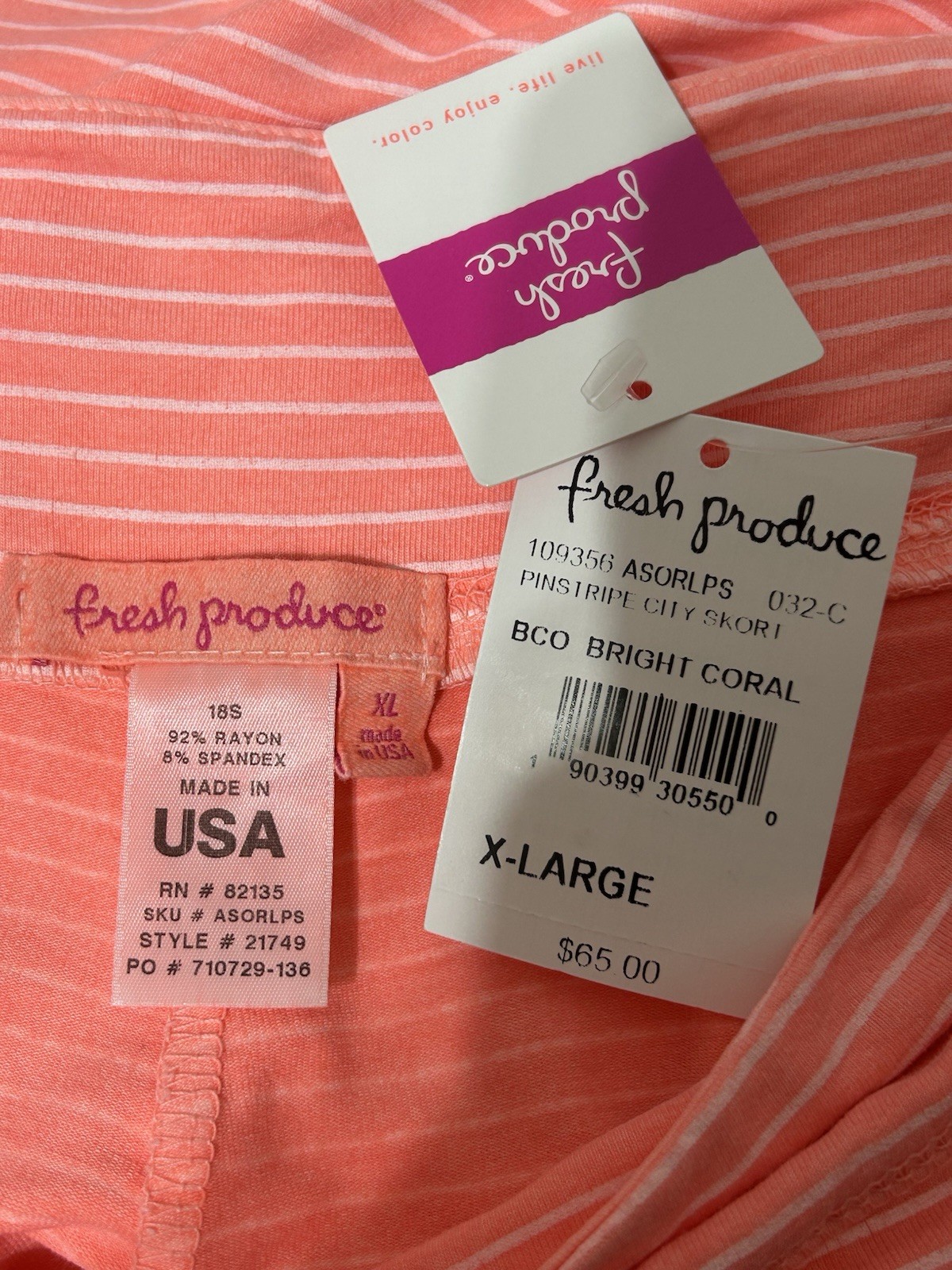 FRESH PRODUCE Bright Coral Pinstripe Stretch Knit City Skort Skirt 65.00 NWT XL