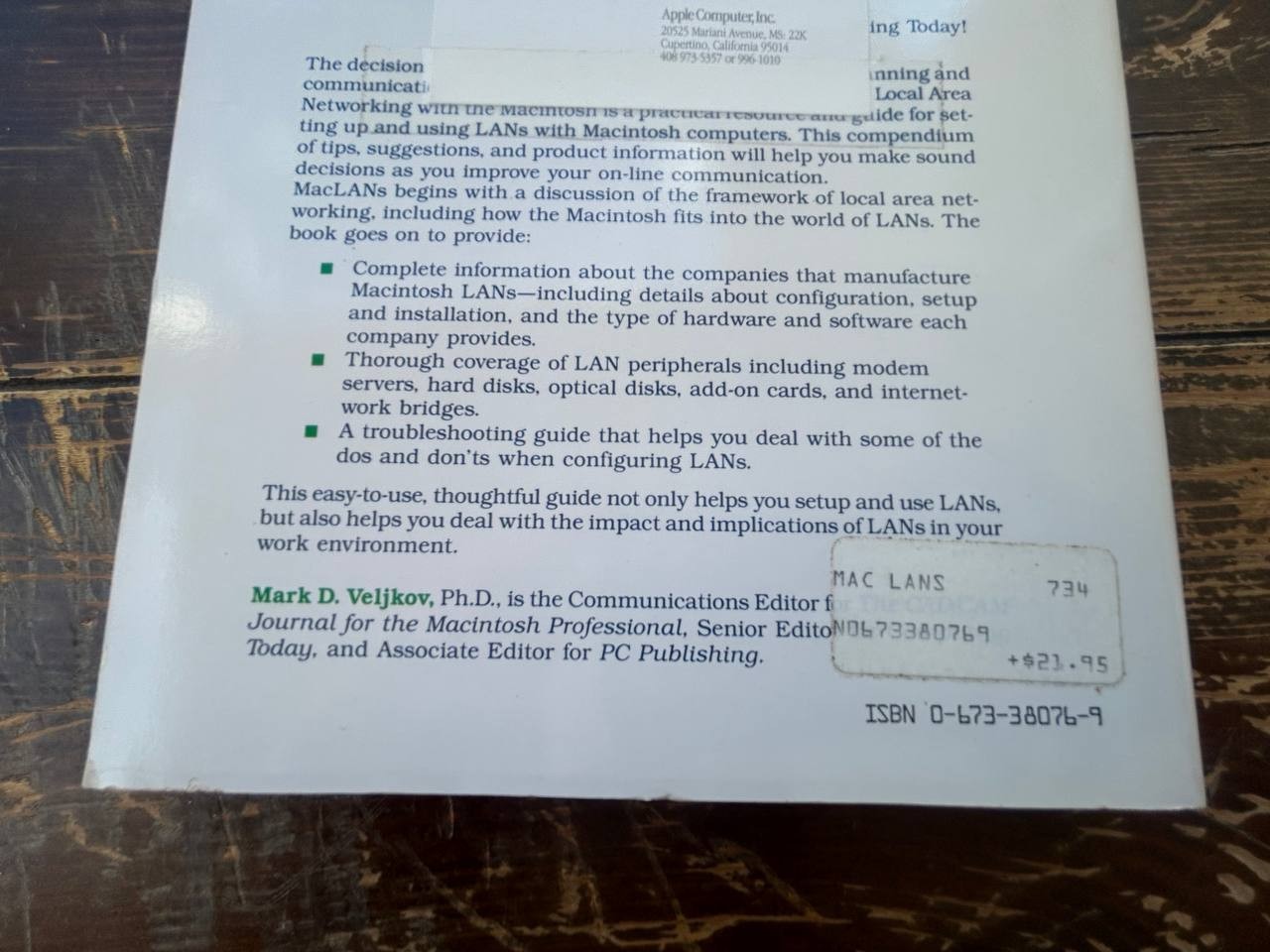 как выглядит MacLANs Local Area Networking with the Macintosh Veljkov 1988 Softcover Book фото