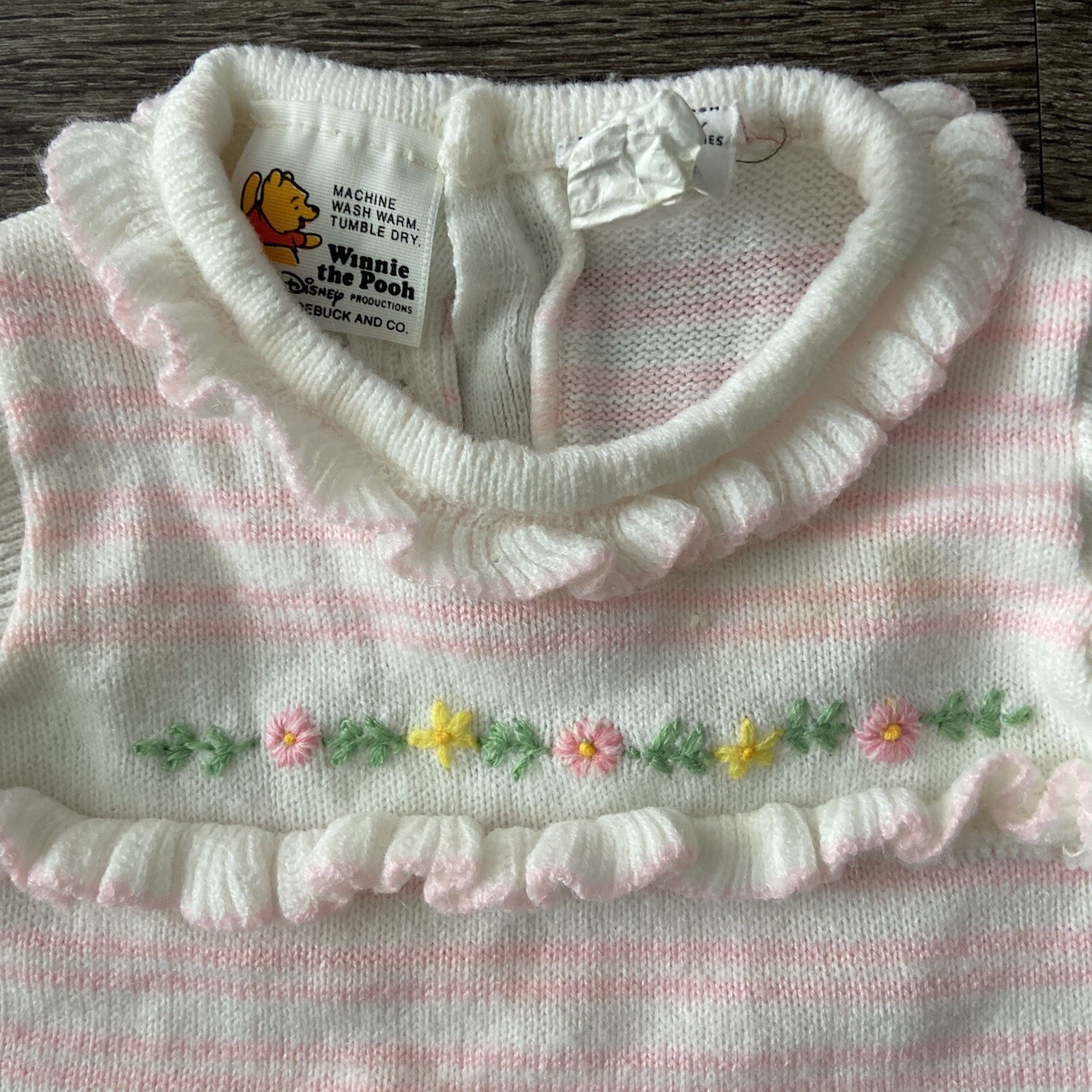Vintage Sears Disney Winnie the Pooh Pink Sweater Pants Outfit Set Newborn L