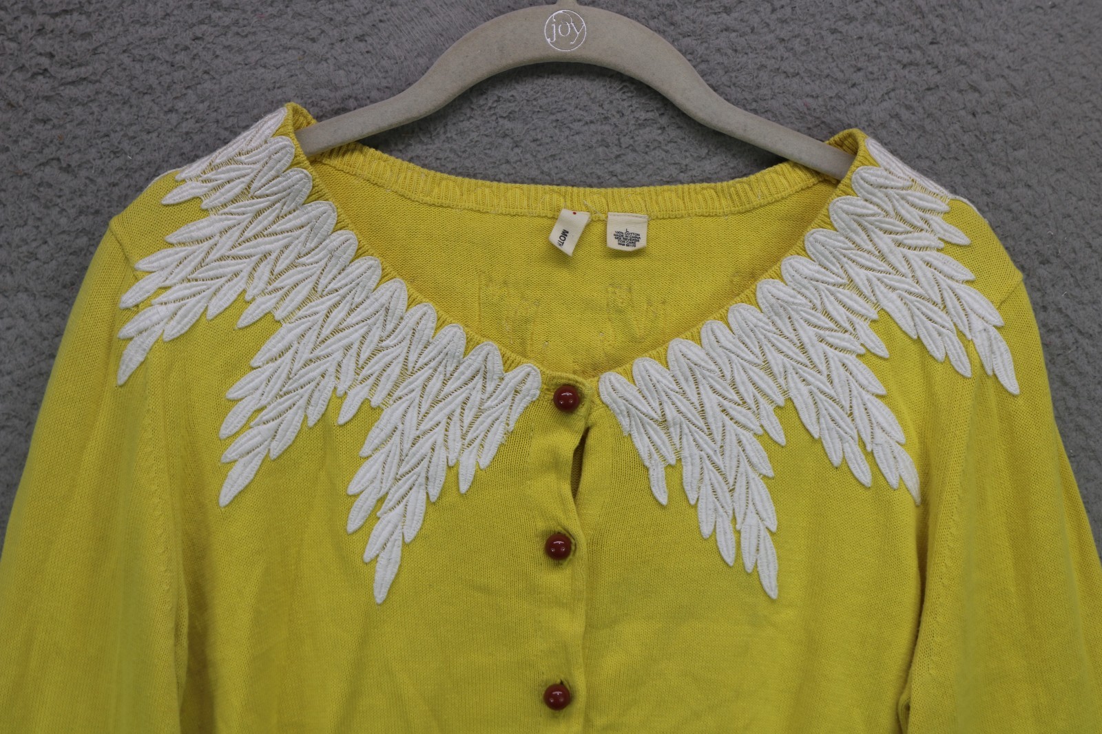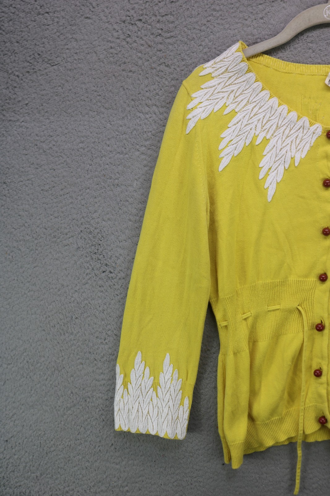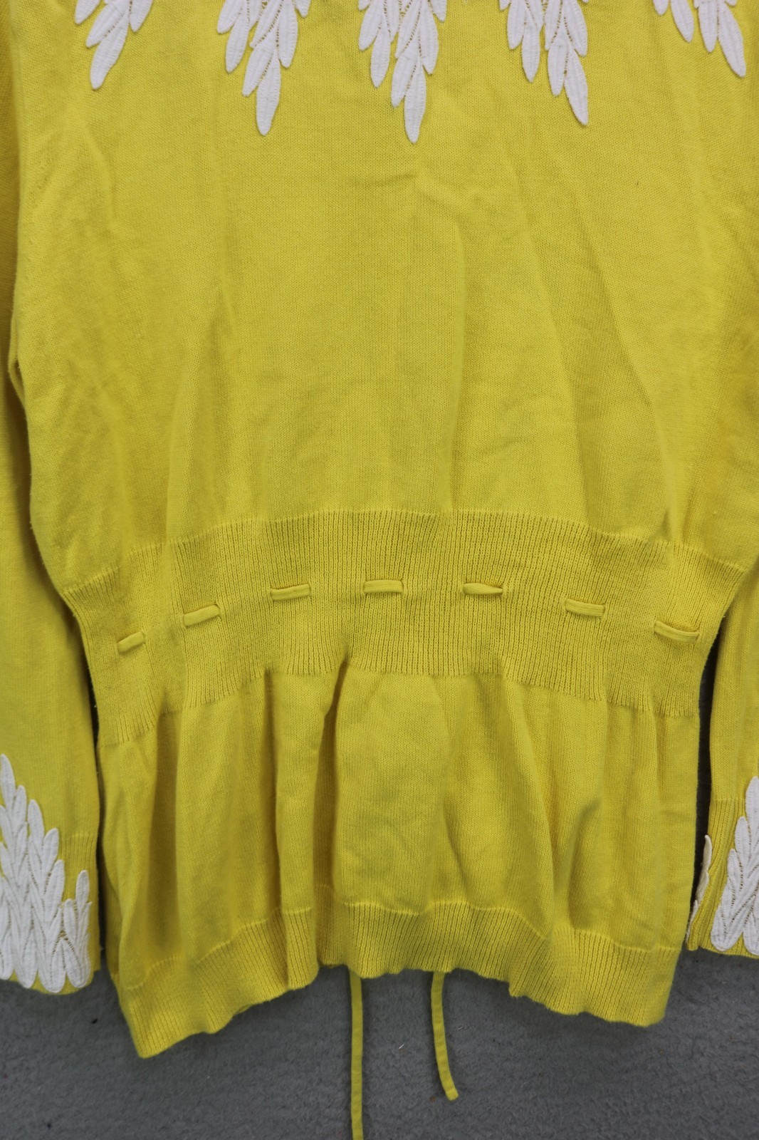 как выглядит Moth-Anthropologie Yellow Embroidered Sweater-Drawstring Waist-Large-Cottagecore фото