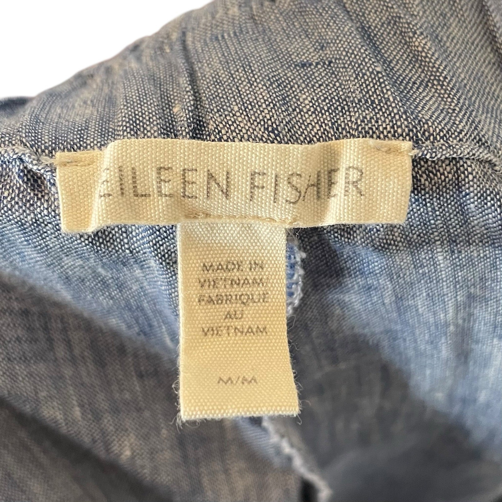Eileen Fisher Organic Linen Straight Cropped Pants Blue Chambray Womens Size M