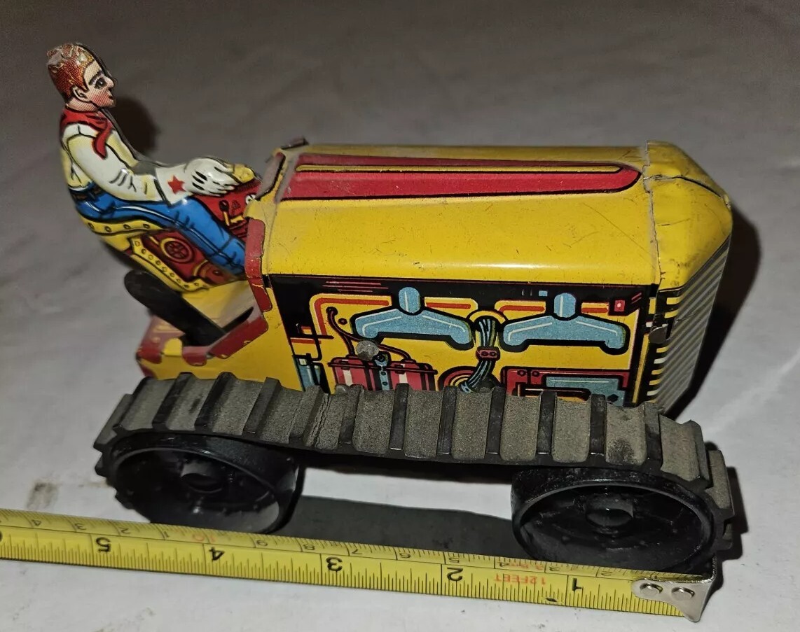 1930s MARX TIN WIND UP CLIMBING TRACTOR With A Farmer