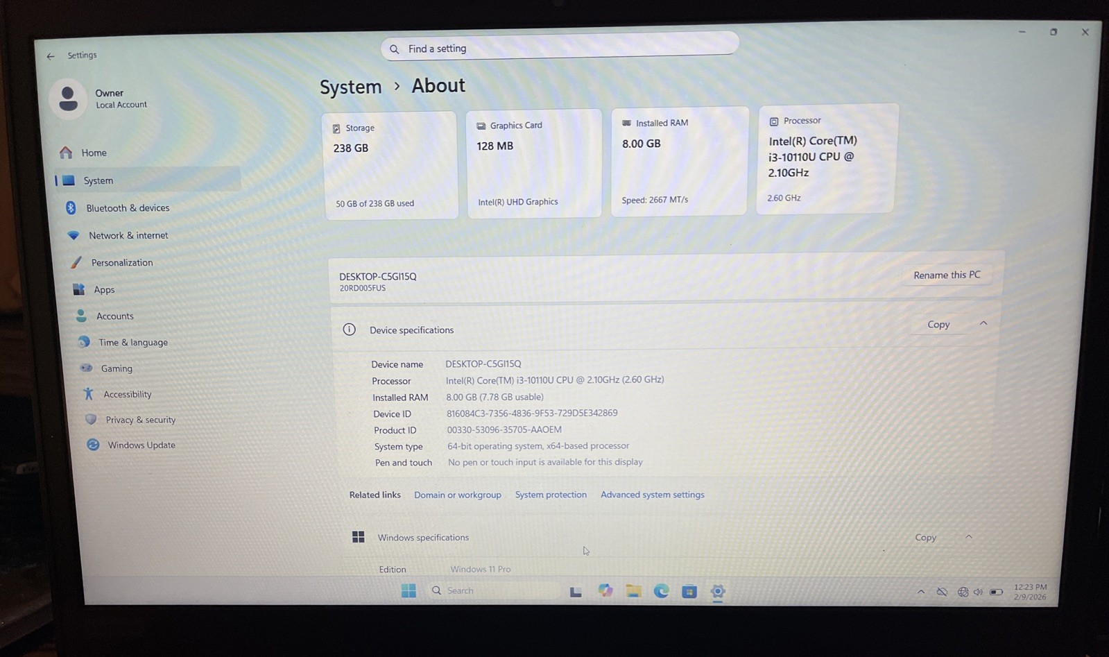 как выглядит Lenovo ThinkPad E15 15" i3-10110U 2.1GHz, 8GB RAM, 256 GB M2, Win 11 Pro READ фото