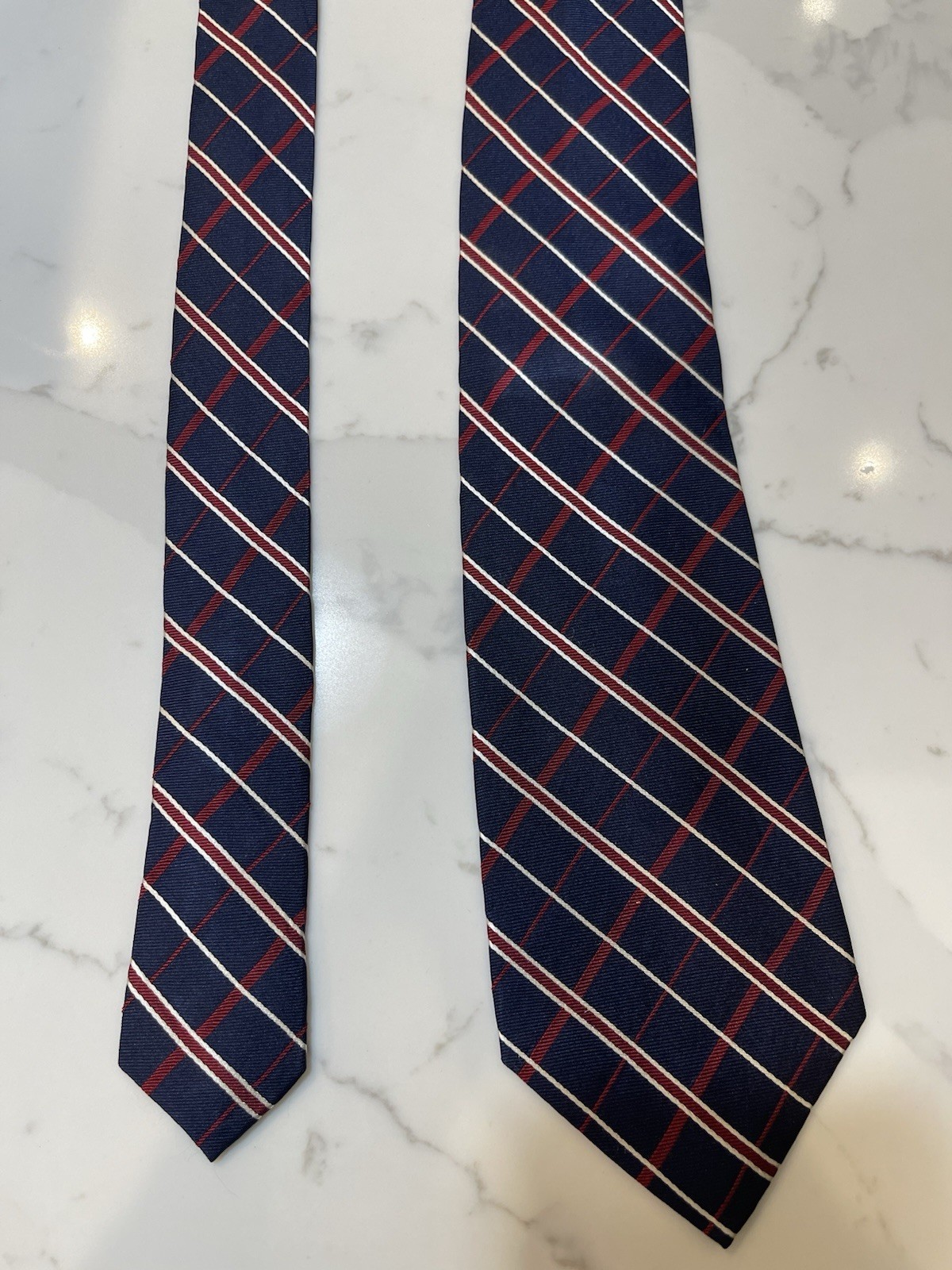 как выглядит Lauren Ralph Lauren Navy Blue Striped Silk Tie 59 x 3.5 Preppy Traditional фото