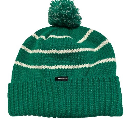 Adidas Kids OS Green White Striped Knit Pom-Pom Beanie Logo Hat With Lining