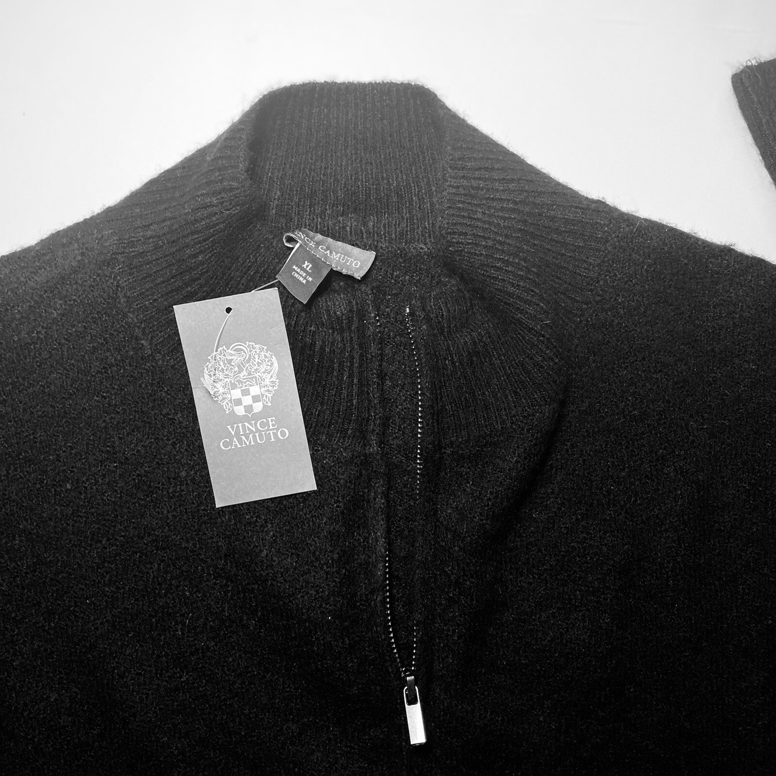 NWT Vince Camuto Womens Full Zip Acrylic Knit Fashion Sweater Black Size XL