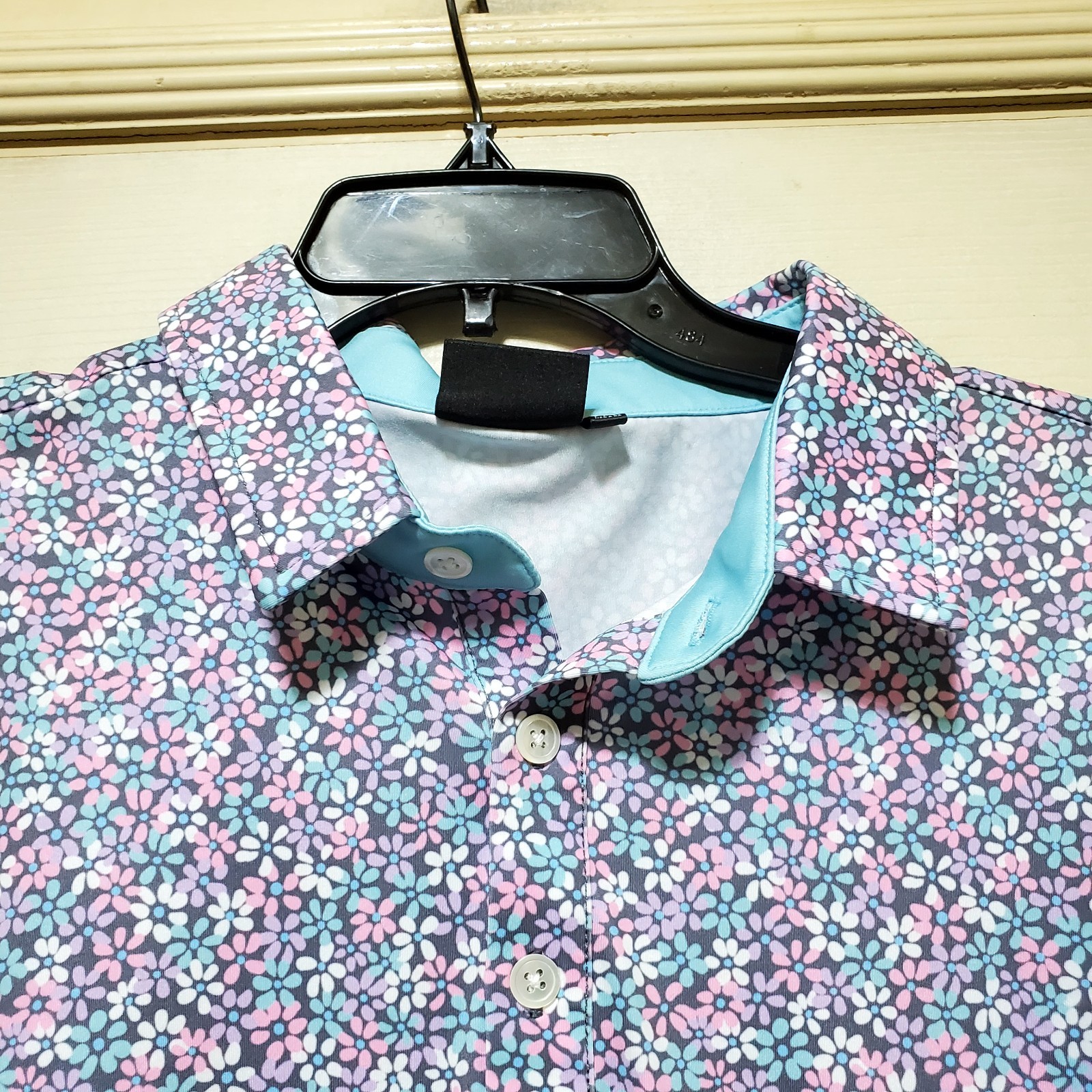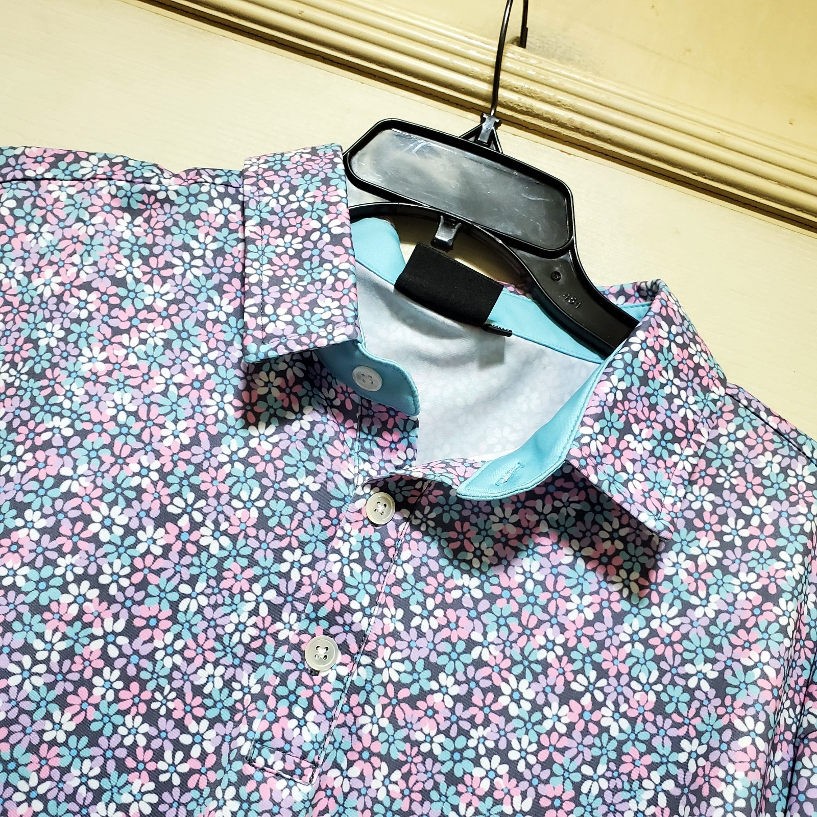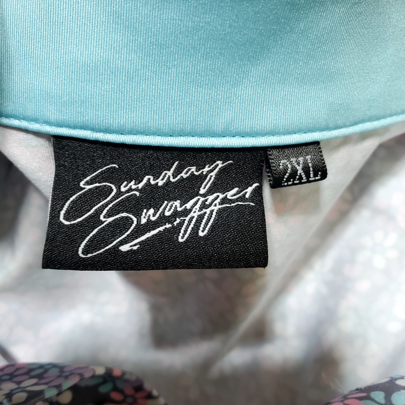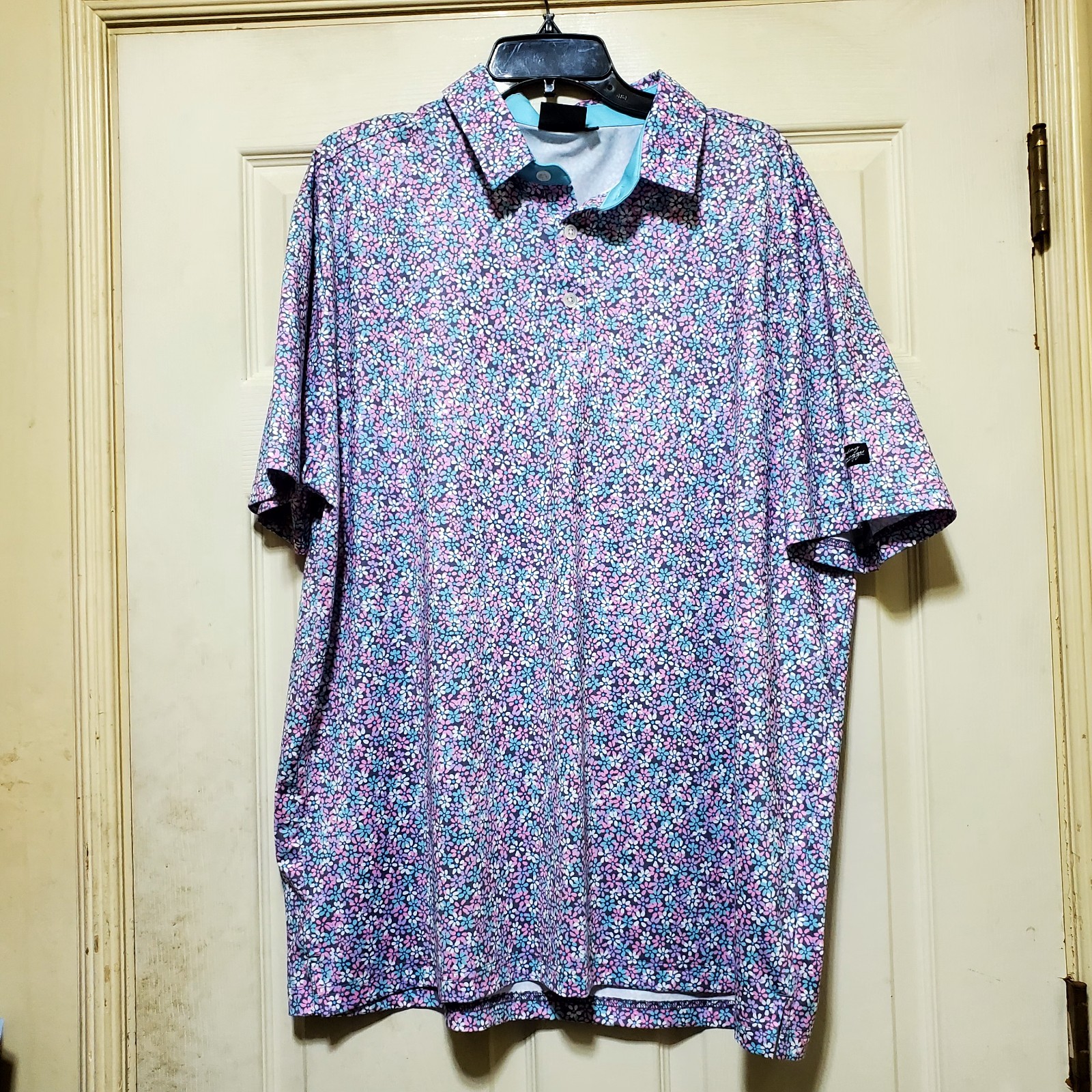 как выглядит Sunday Swagger Polo Shirt Mens 2XL Blue Pink Floral Golf Hawaiian Performance фото