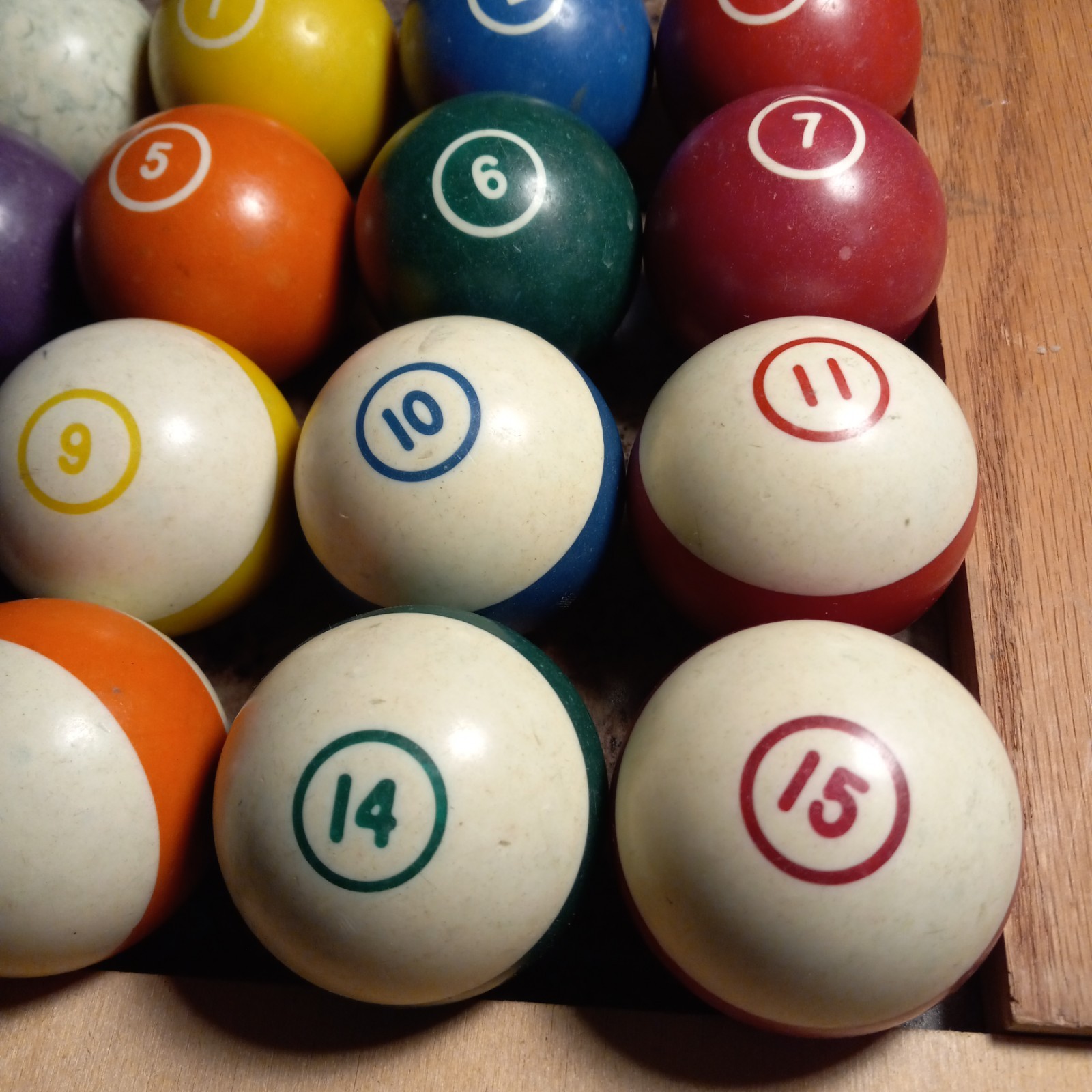 Vintage Billiards 2 1/4 Pool Balls with Cue Ball Complete Set
