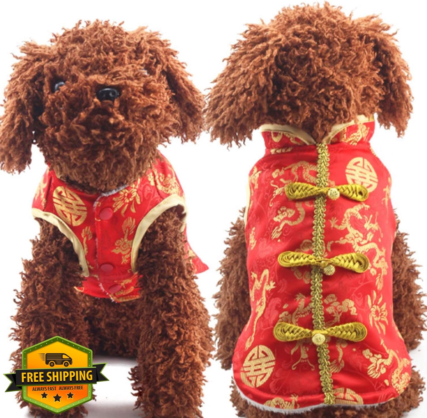 New Year Dog Costume Chinese Spring Festival Winter Pet Clothes Vest of The T...