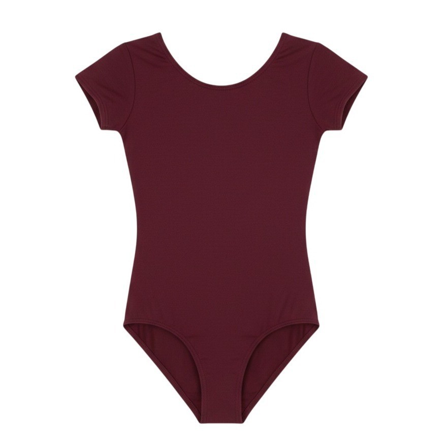 как выглядит Capezio Childs S 4-6 Short Sleeve Scoop Neck Leotard Bodysuit Burgundy фото