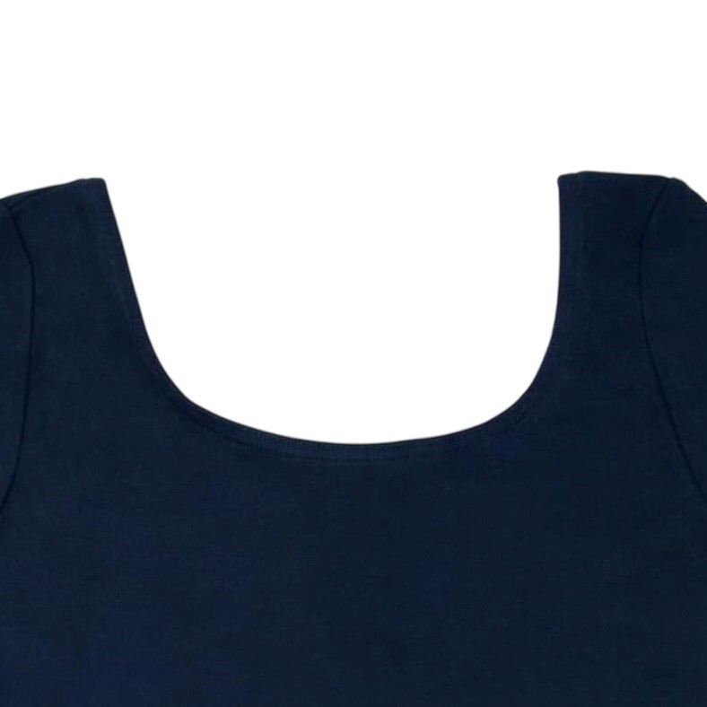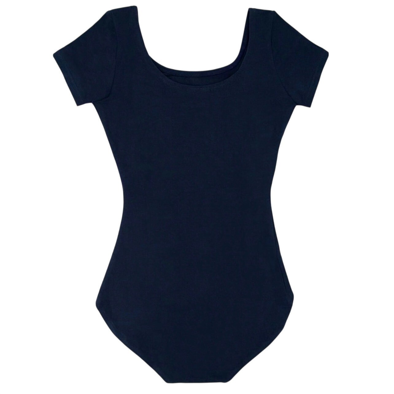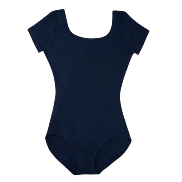 Danskin Adult Large Leotard Bodysuit Navy Blue Short Sleeve Scoop Neck Dance