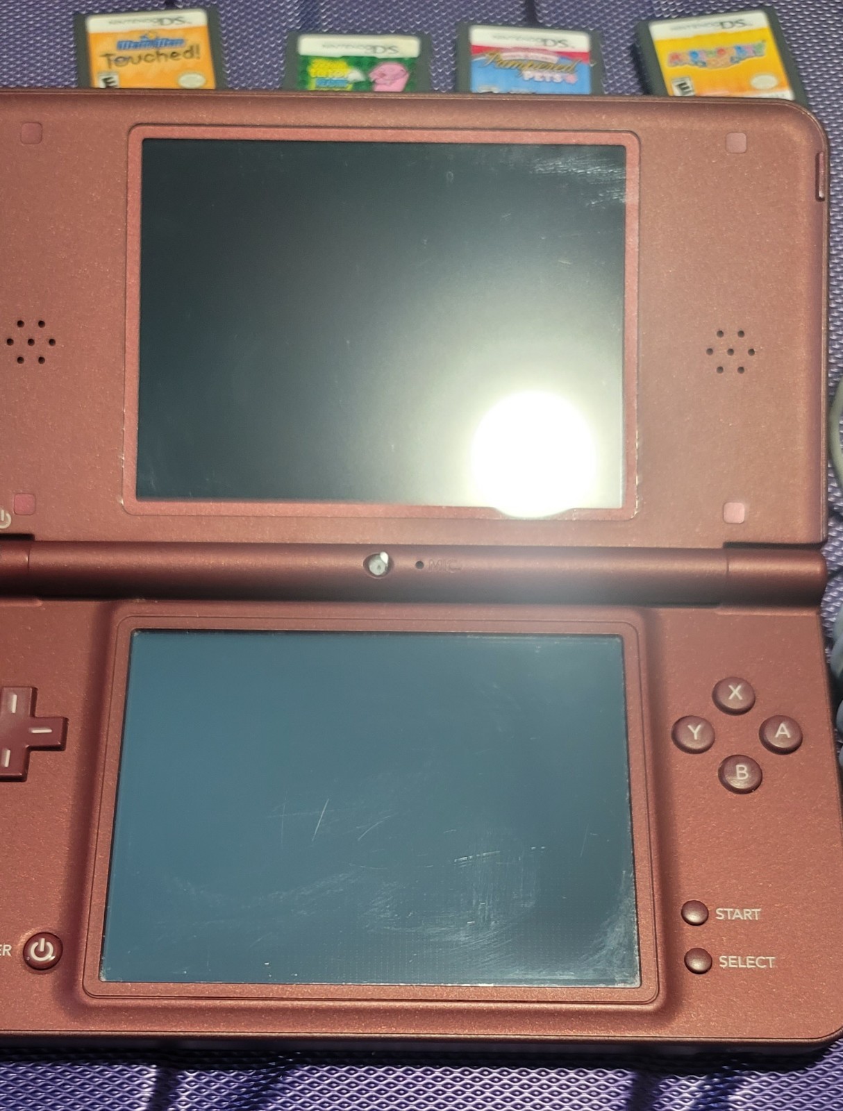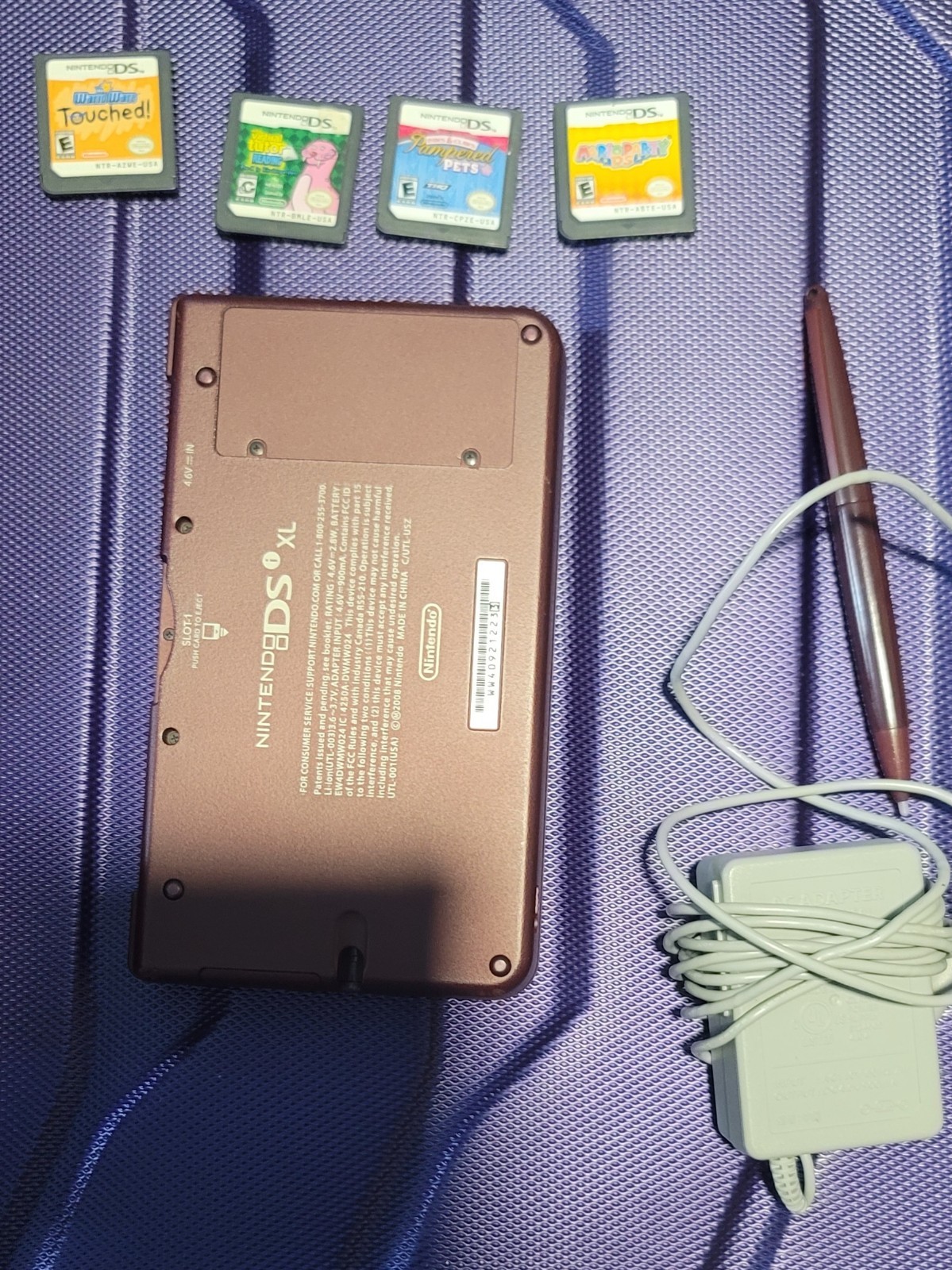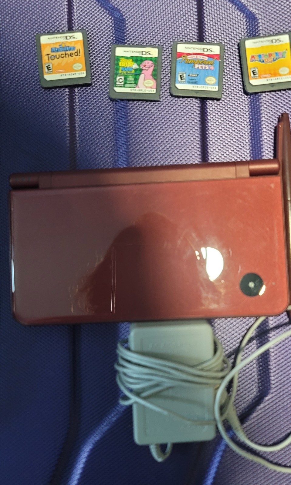Nintendo DSi XL Handheld System Burgundy Wine Red Console And Charger