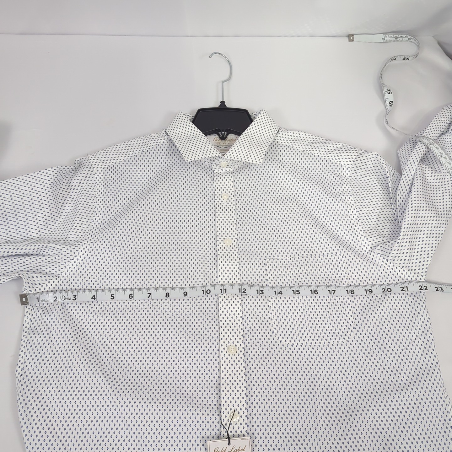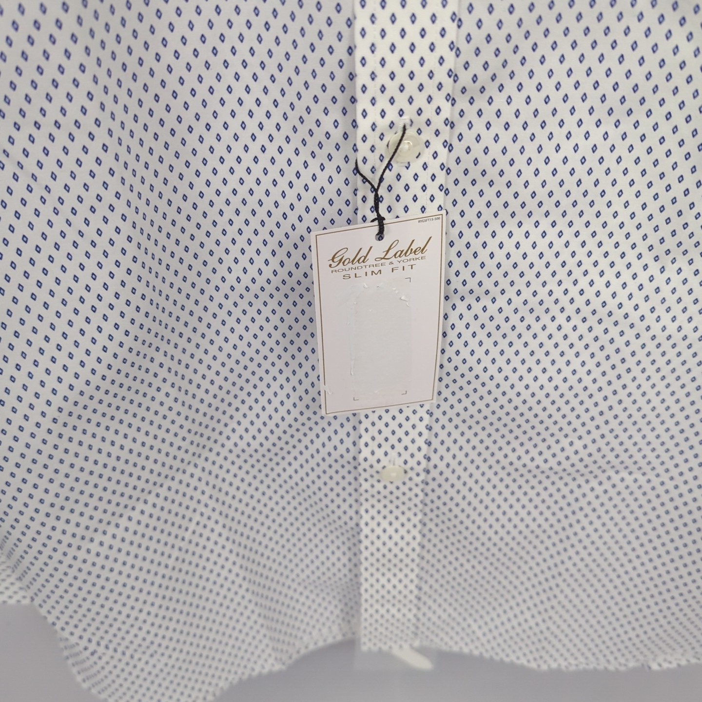 Roundtree Yorke Gold Label Slim Fit Shirt White w/Blue Geometric 16.5/35 NWT