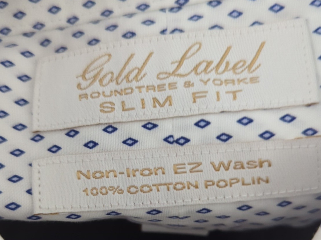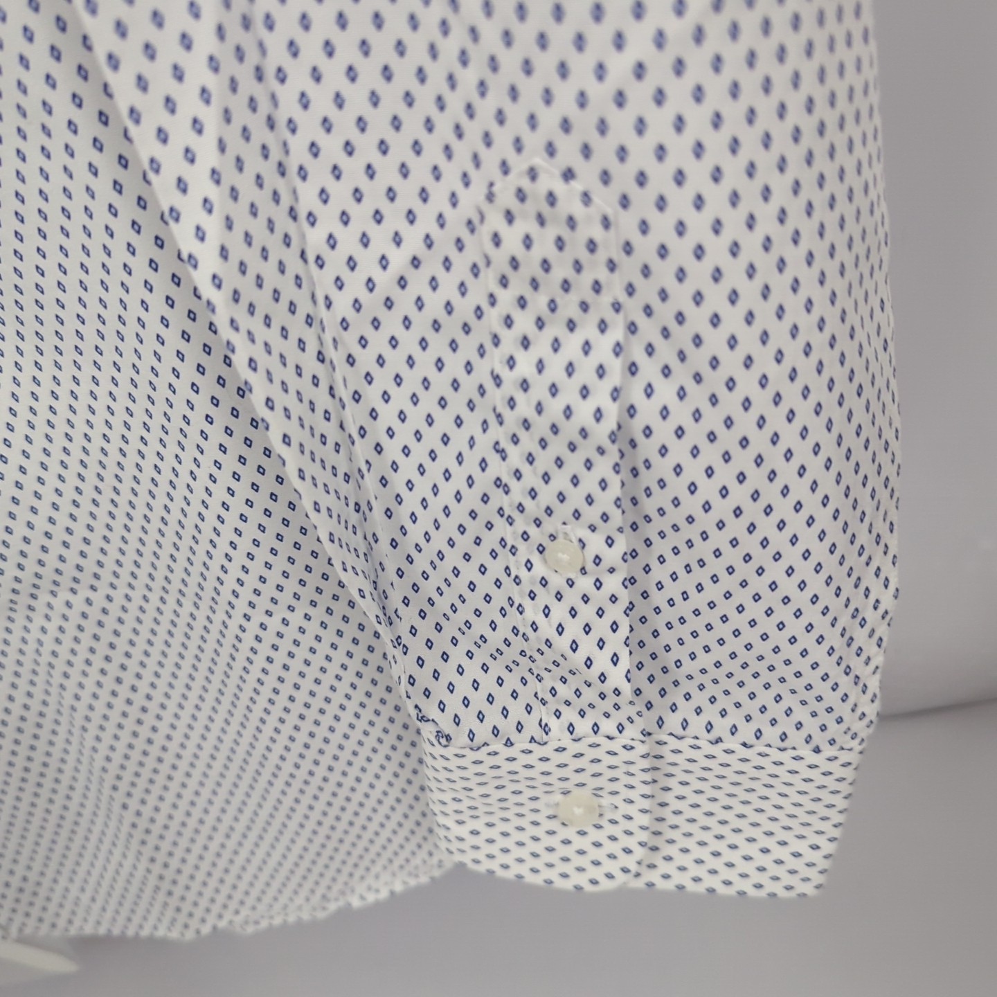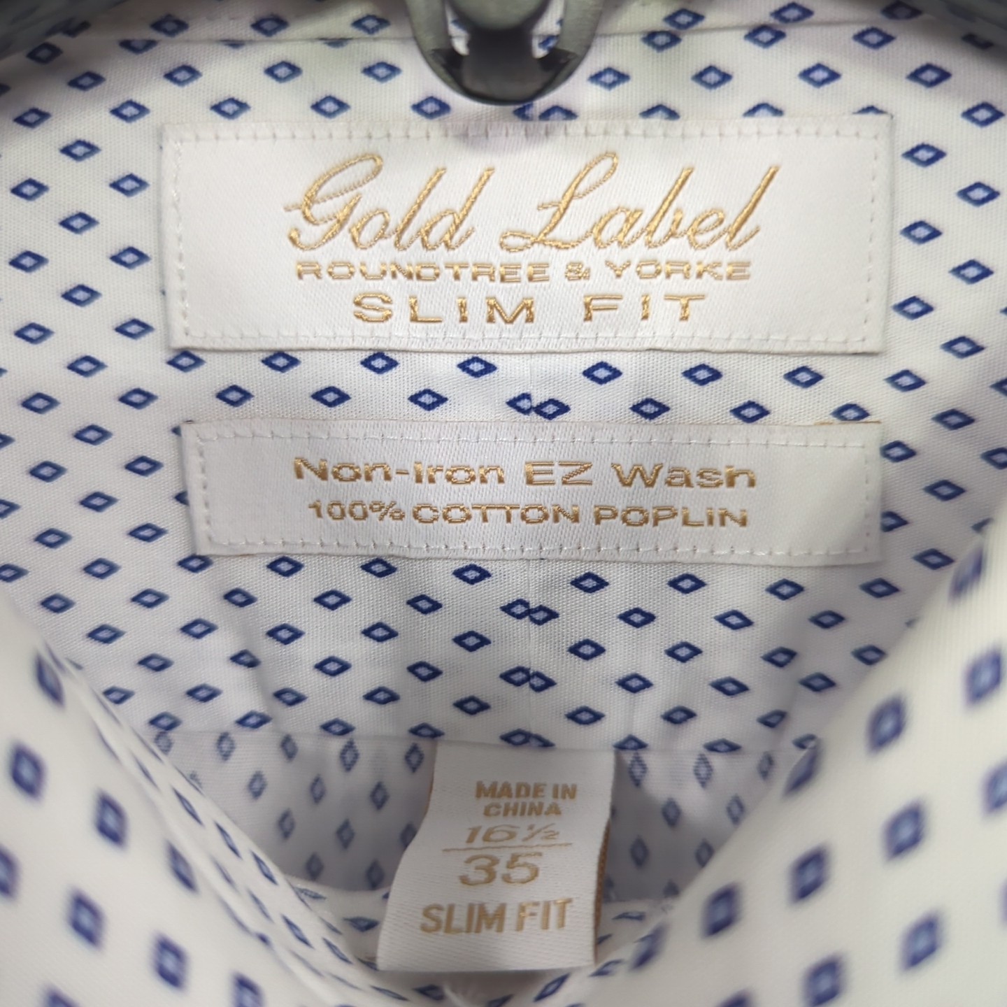 как выглядит Roundtree Yorke Gold Label Slim Fit Shirt White w/Blue Geometric 16.5/35 NWT фото