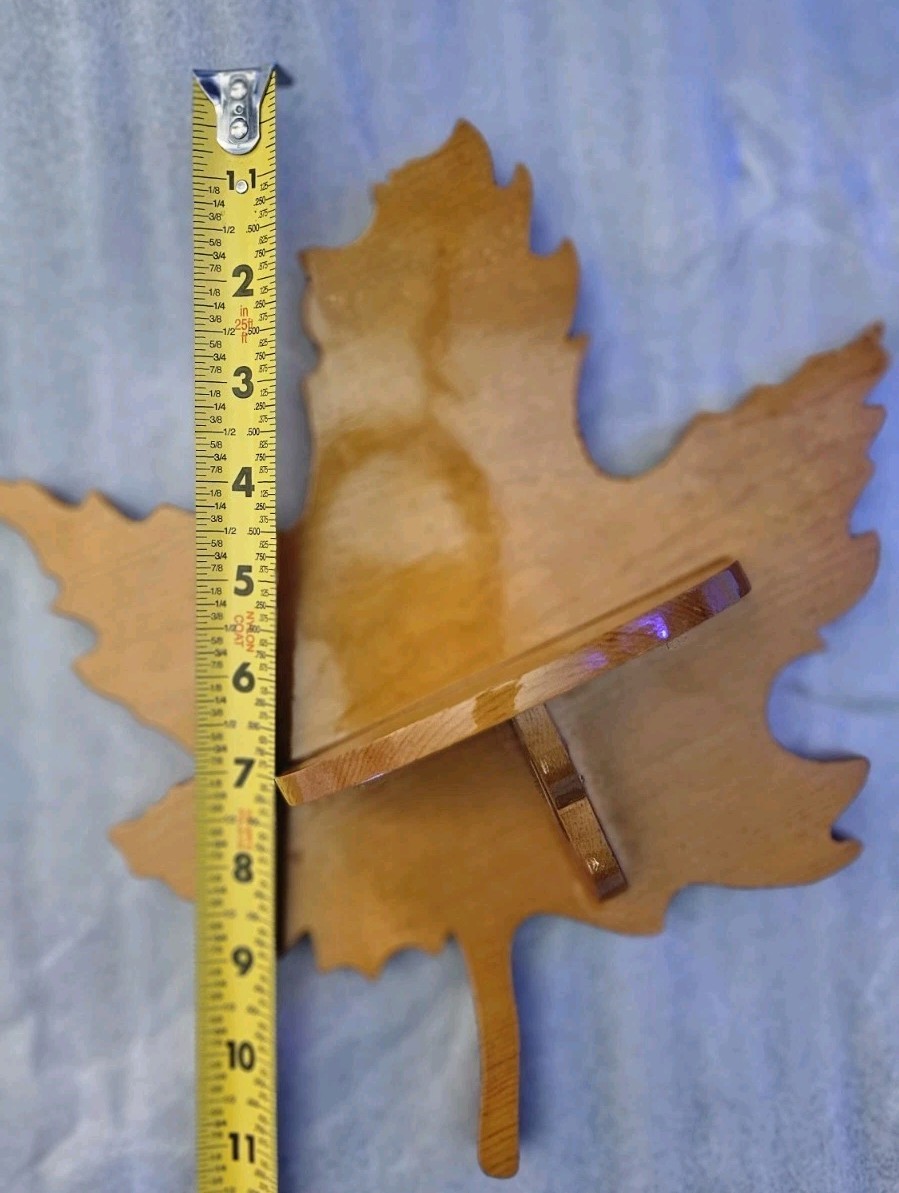 как выглядит Vintage Handmade Wooden Maple Leaf Wall Shelves Set of 2 Decorative Display фото