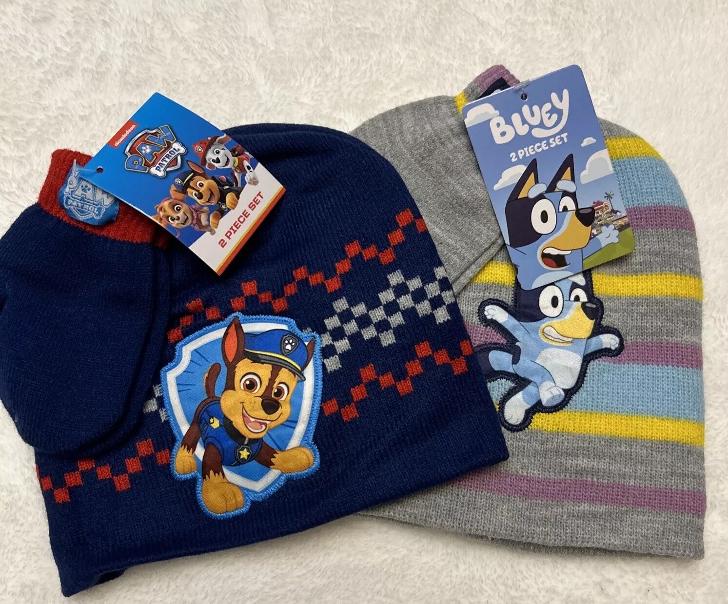 Paw Patrol Chase And Bluey Toboggan And Mitten 2 Piece Sets For Children NWT
