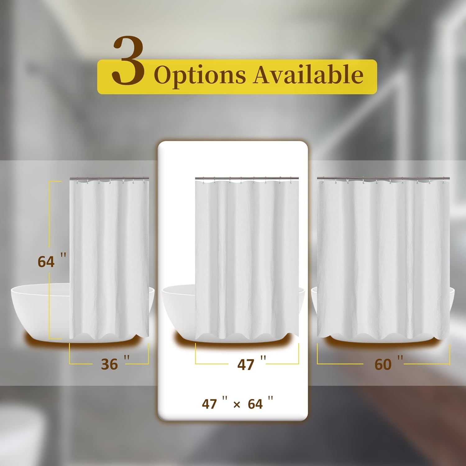 RV Shower Curtain Waffle Weave 47x64 Inches Water Repellent Washable Polyester