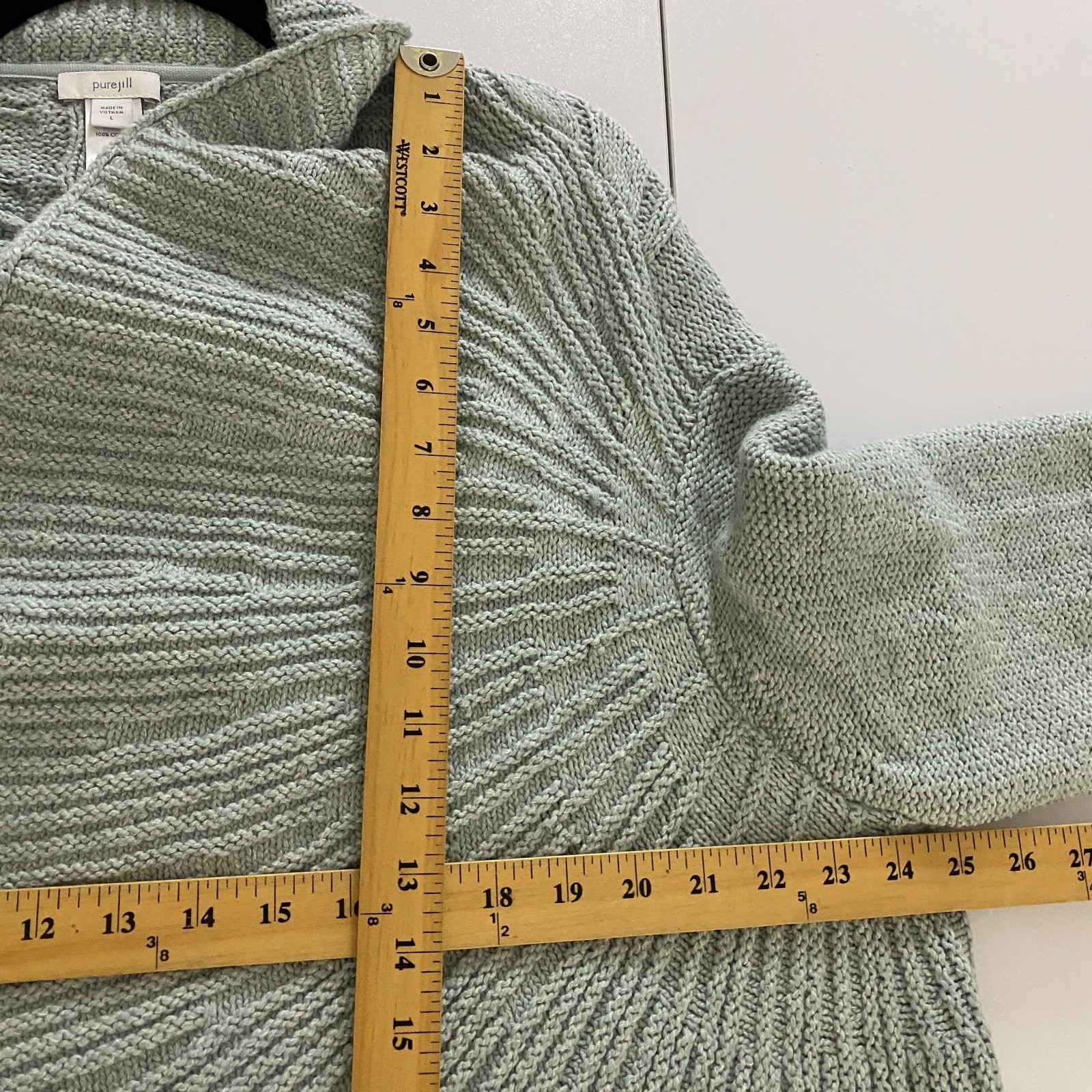как выглядит J Jill Pure Open Front Cardigan Sweater Size Large Cotton Cable Knit Gray фото