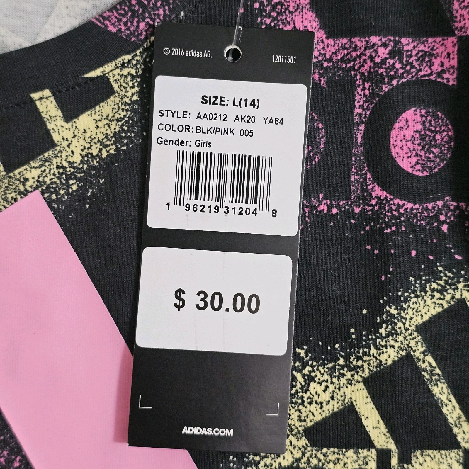 Adidas Girls Short Sleeve T-Shirt Black Size L 14 Short Sleeve New