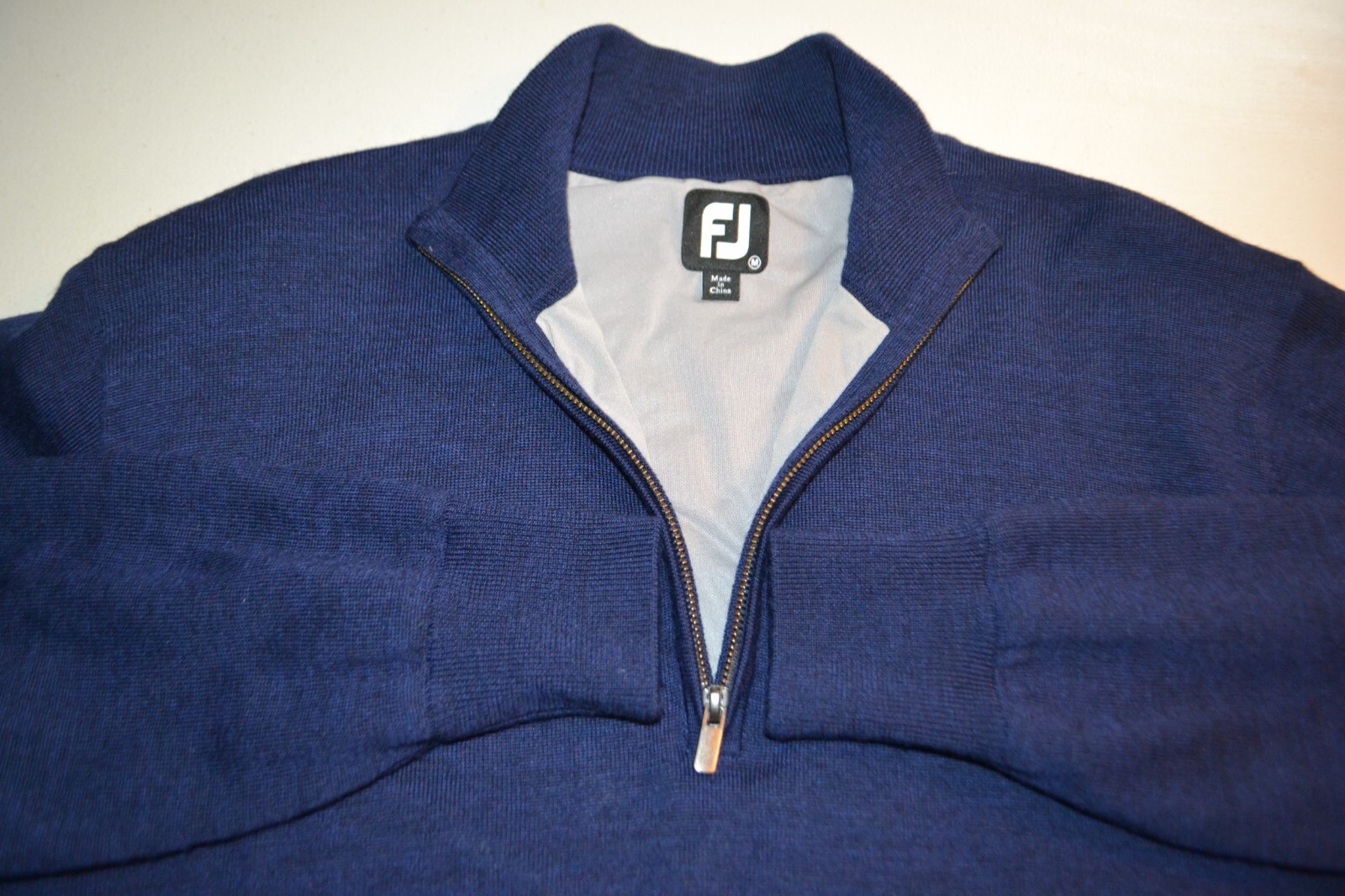 как выглядит Footjoy Men Navy Blue 100 Wool 1/4 Zip Pullover Inner Liner Golf Sweater Sz M фото