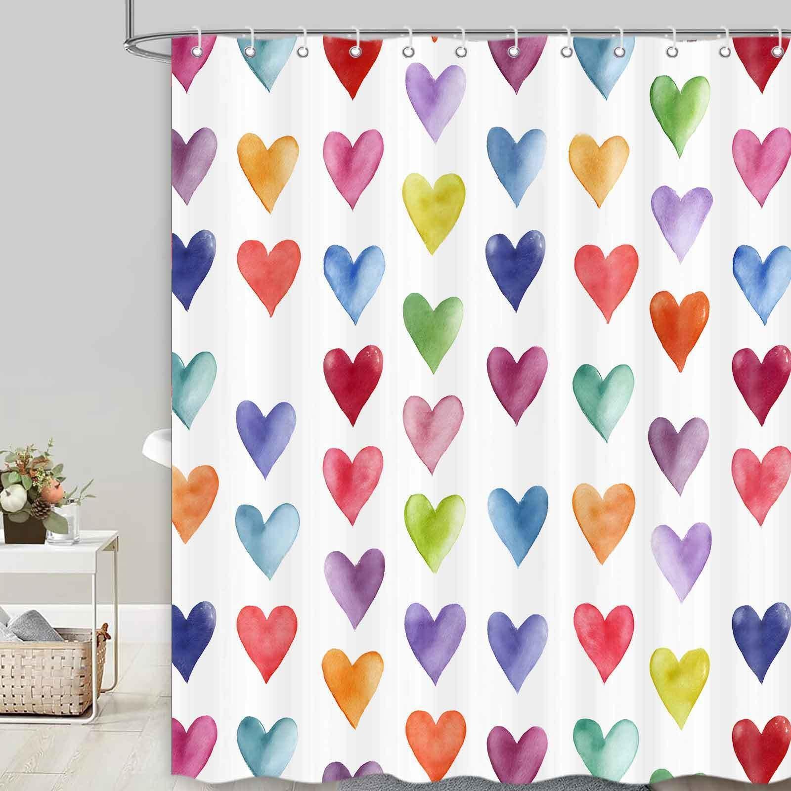 Valentine's Day Shower Curtain, Cute Blue Red Heart Valentines Shower Curtain...