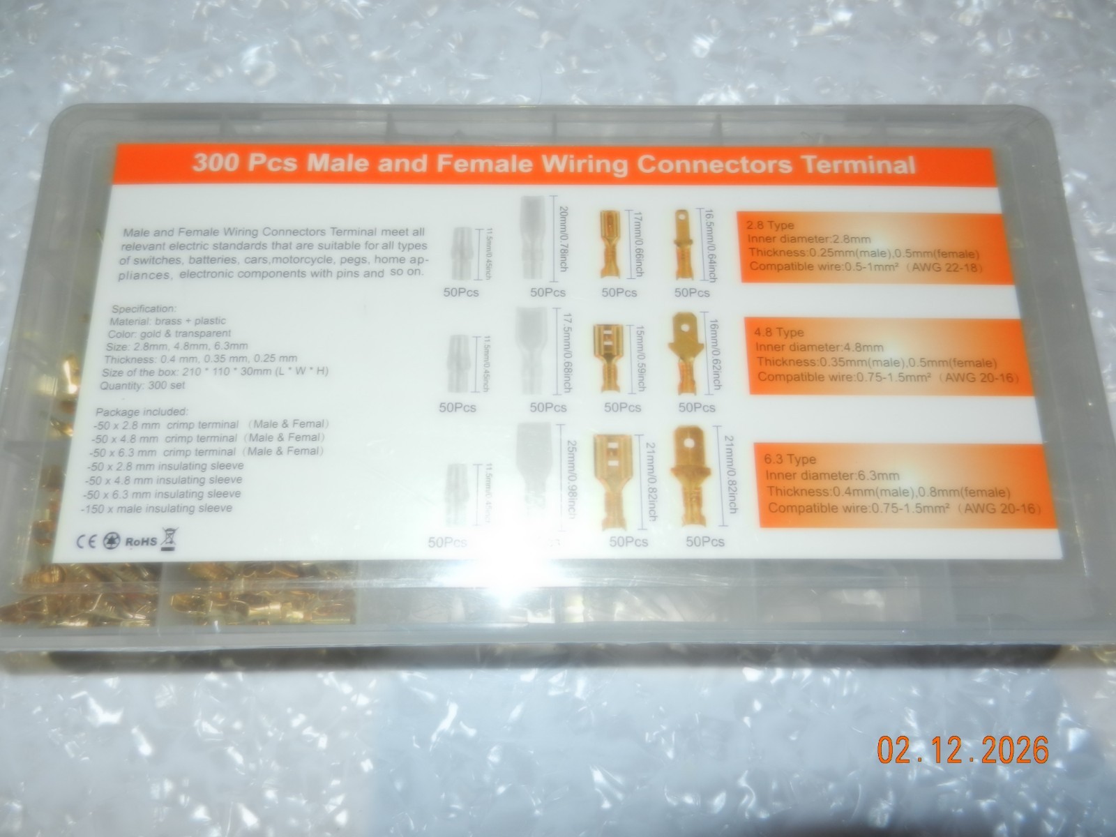 300Pcs spade Wire Connectors, Male and Female Terminal DIY crimp on
