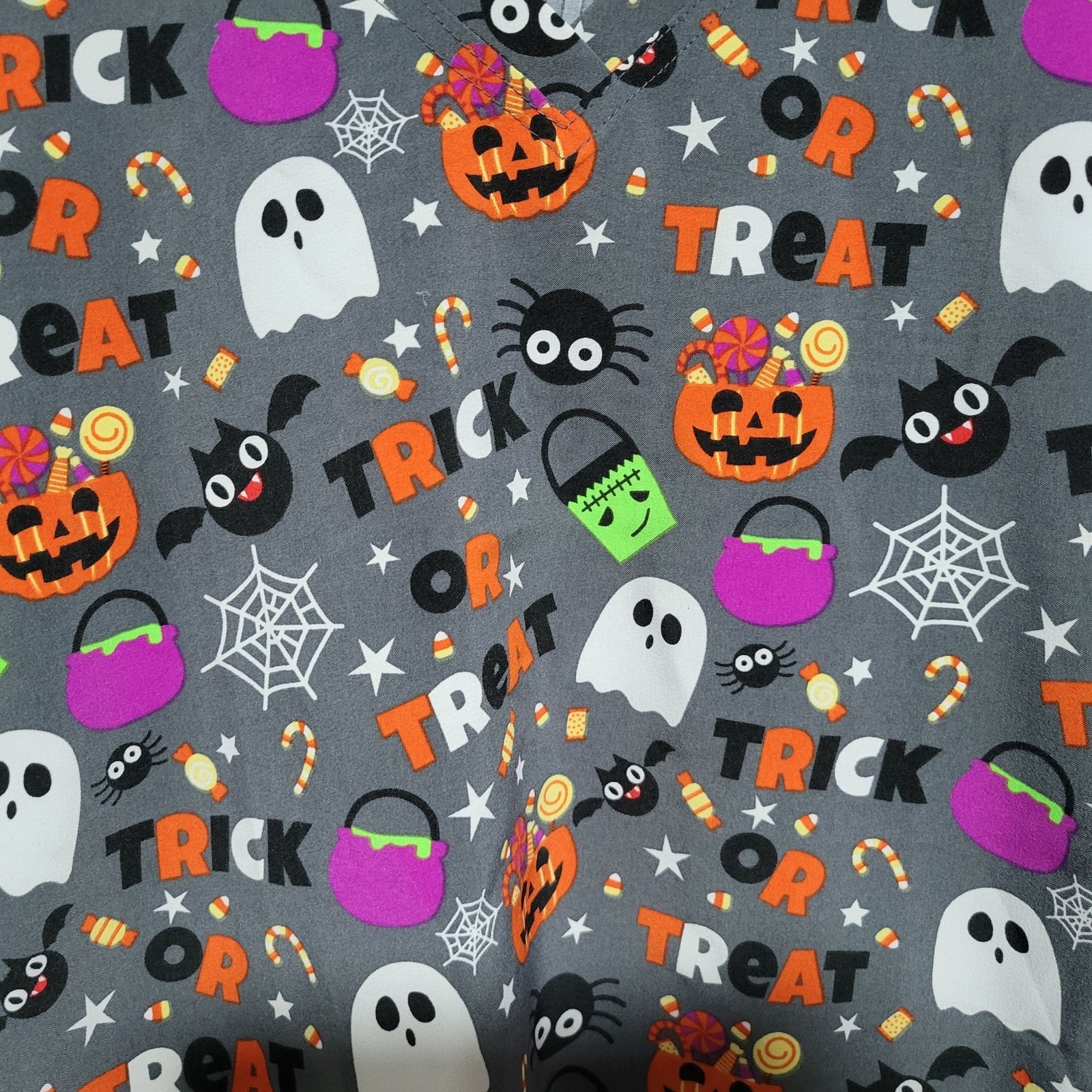 как выглядит Scrubaid Halloween Scrub Top Womens Size Medium Trick or Treat Stretch фото