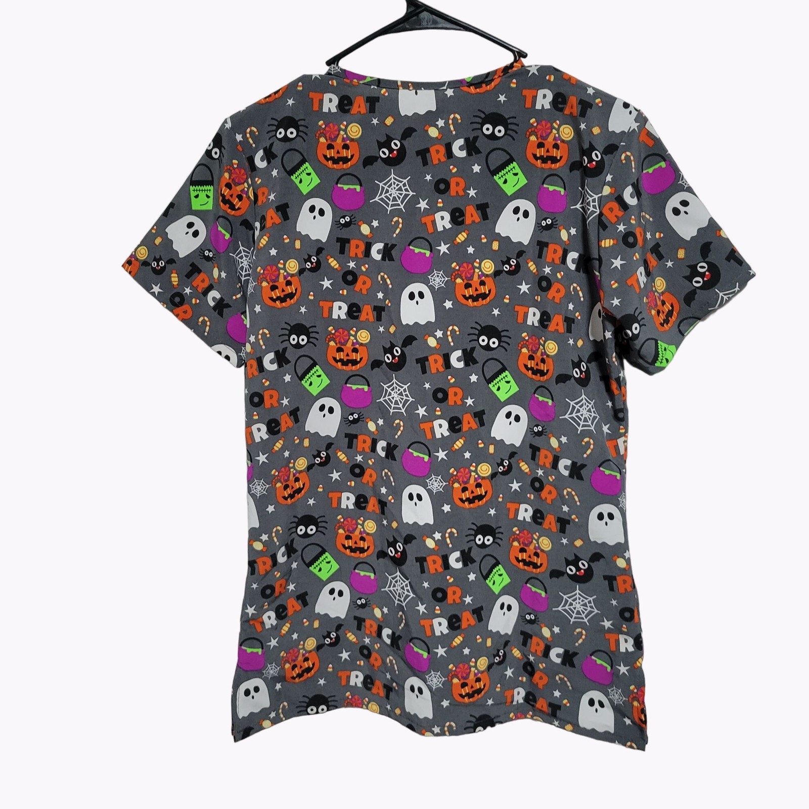 Scrubaid Halloween Scrub Top Womens Size Medium Trick or Treat Stretch