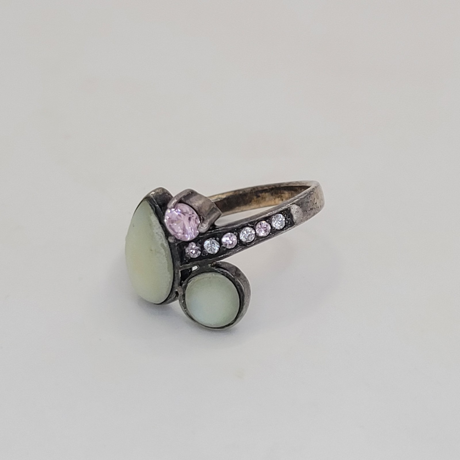 Vintage 925 Sterling Silver Cluster Ring w Pear Gemstones Pink Accent Size 7.25
