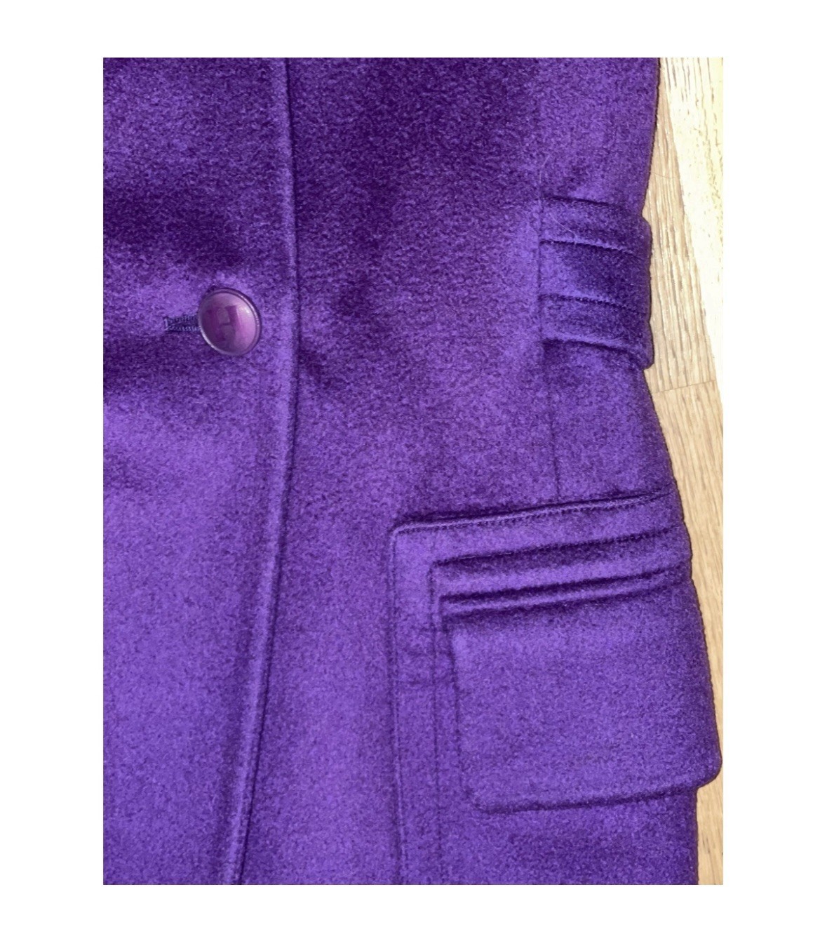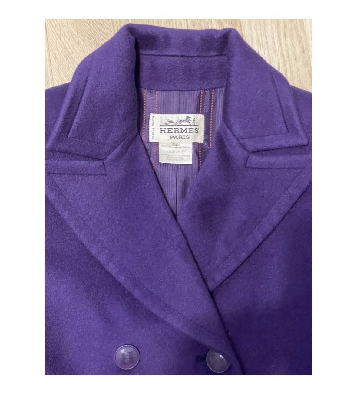 как выглядит Hermes Woman 100 Cashmere rare Royal Purple Coat FR34 With Small Defect фото