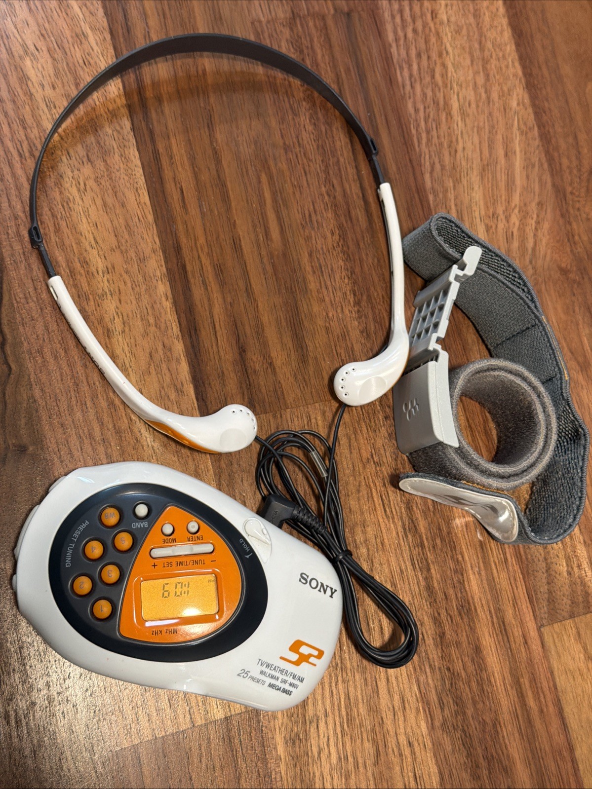 Sony S2 Walkman SRF-M80V w/arm Clip Headphones Sports Radio TV Weather FM/AM