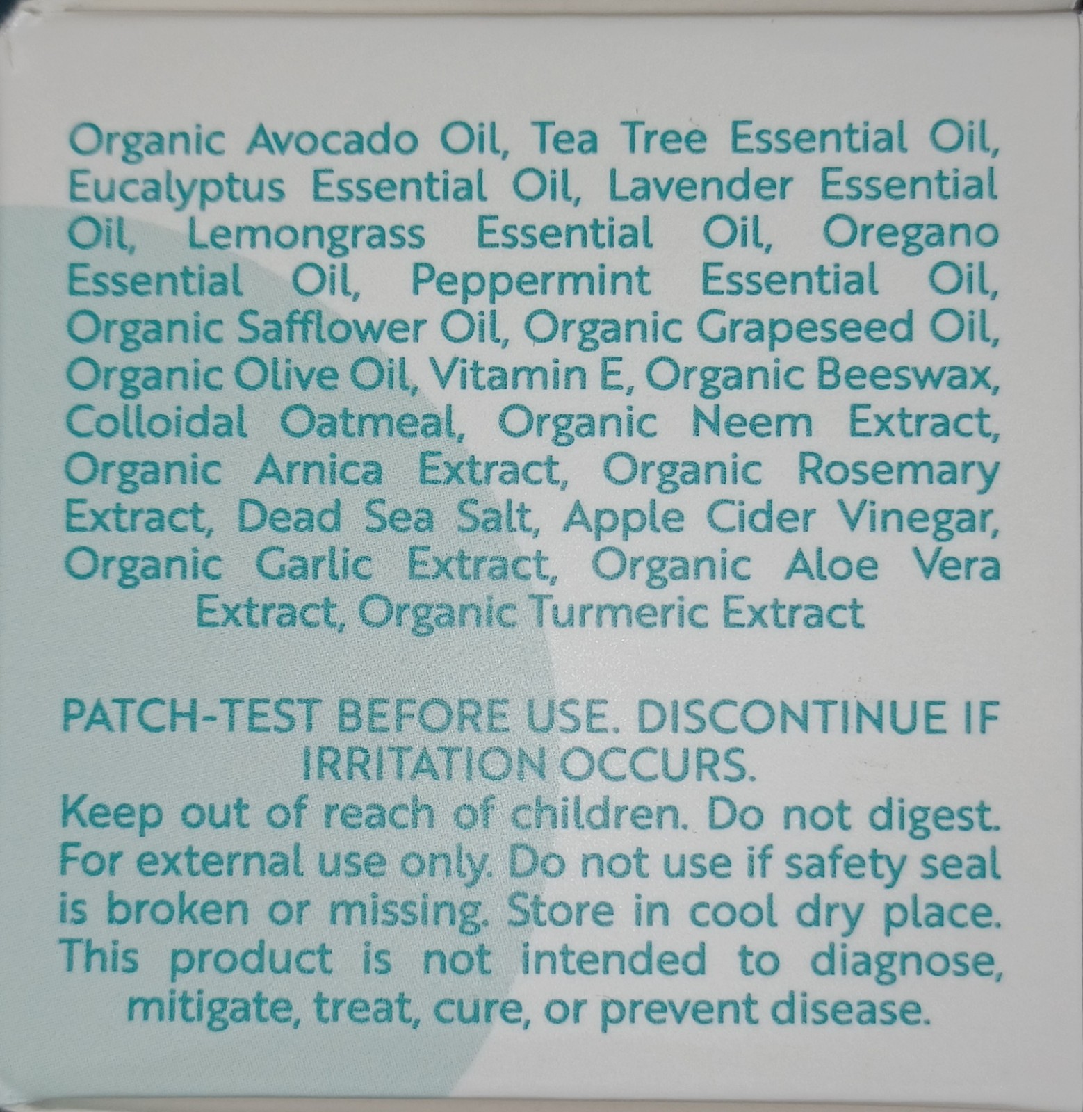Active Ingredients: Aloe Vera, Turmeric, Tea tree, Colloidal oatmeal, Arnica extract, Neem extract
