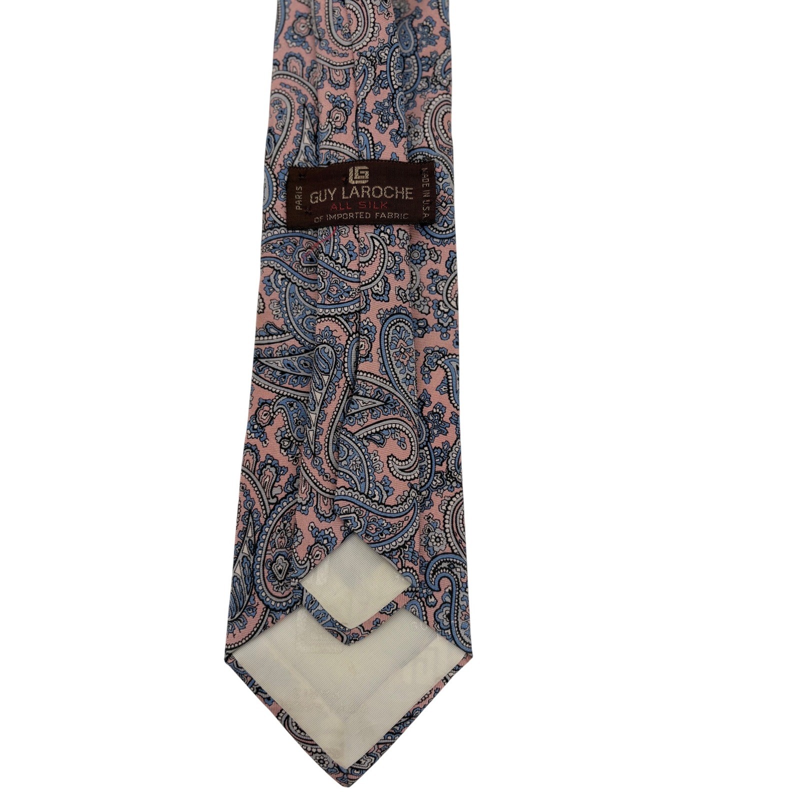Guy Laroche Paris Mens Silk Paisley Tie Pink Blue Made in USA Vintage Accessory