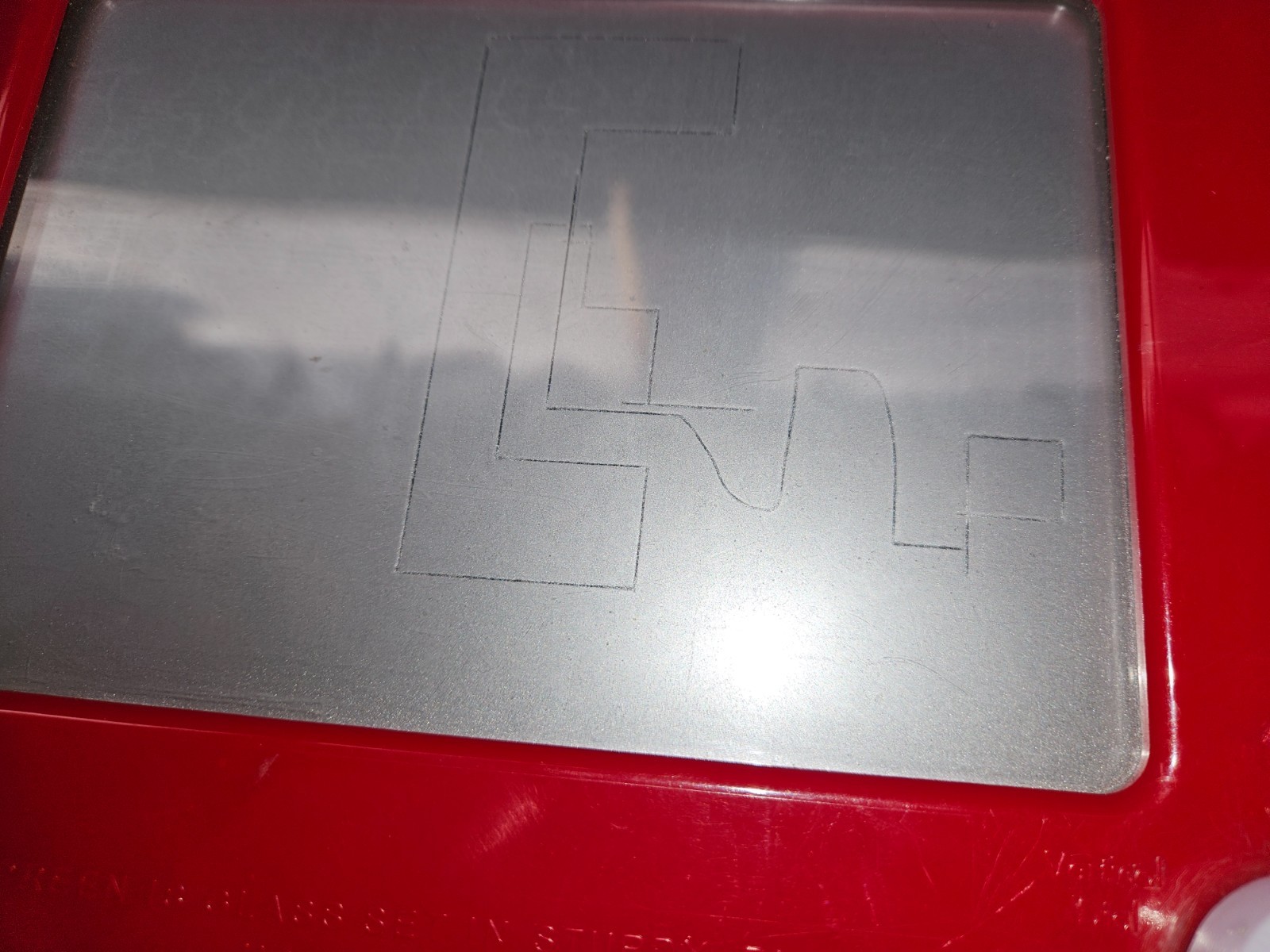 Etch A Sketch Mechanical Drawing Toy with Red Plastic Frame with White Knobs