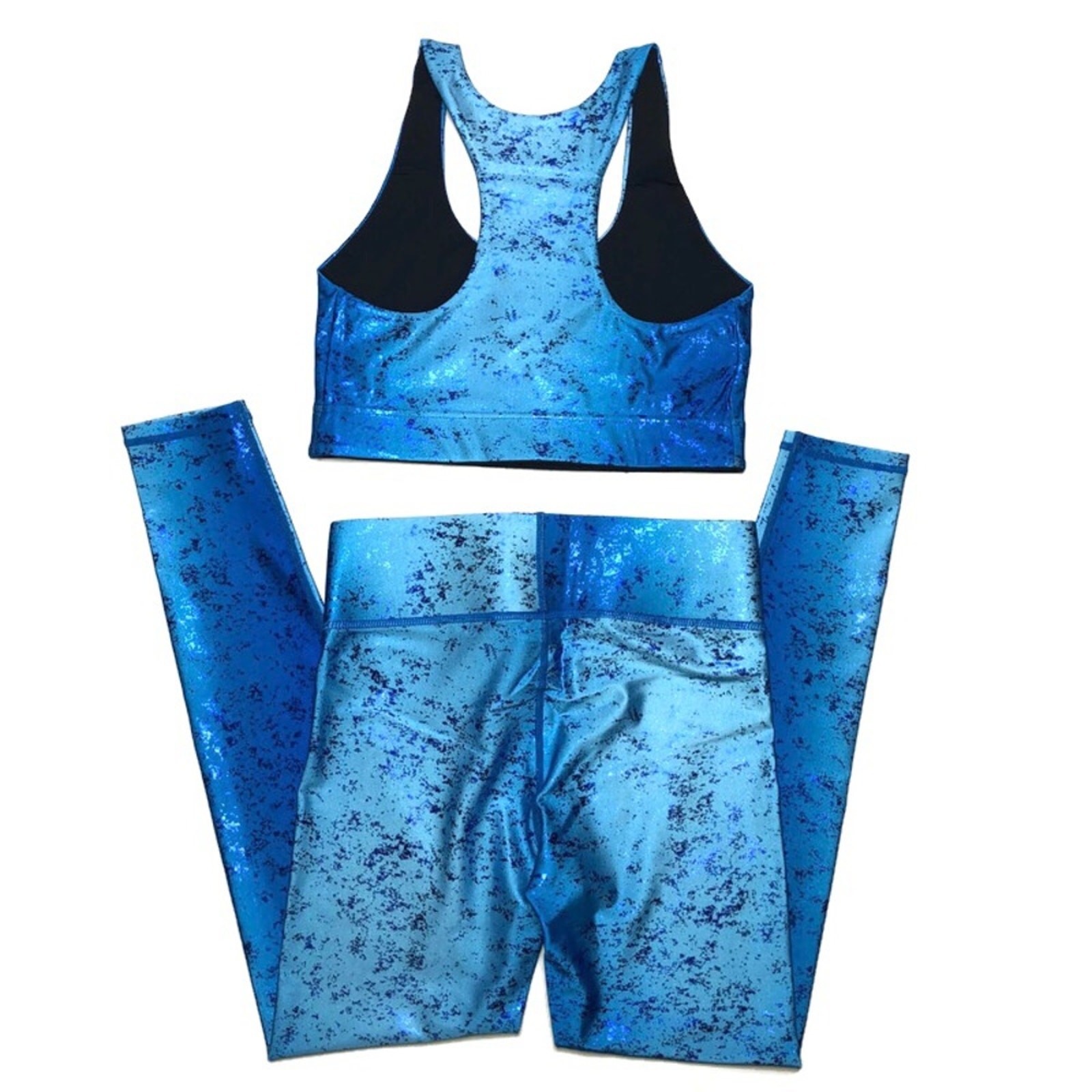 как выглядит Terez Balayage Foil Blueberry Activewear Leggings Sports Bra Set XS фото