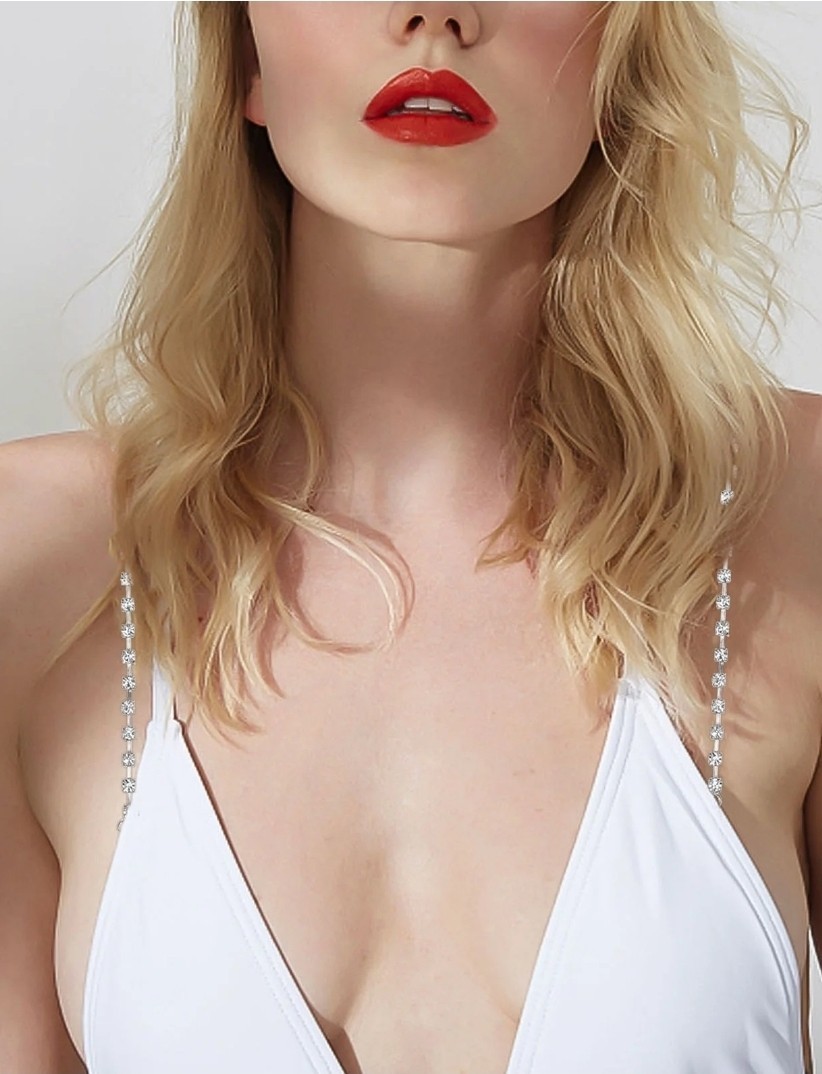 2 Crystal Adjustable Bra Straps Sparkle White Silver Rhinestone Gem Flexible