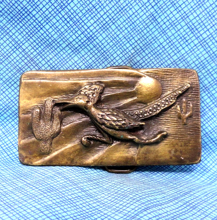 Greater Roadrunner Dress Belt Buckle Desert Southwest Bird Vtg 70s Adezy .GMP984