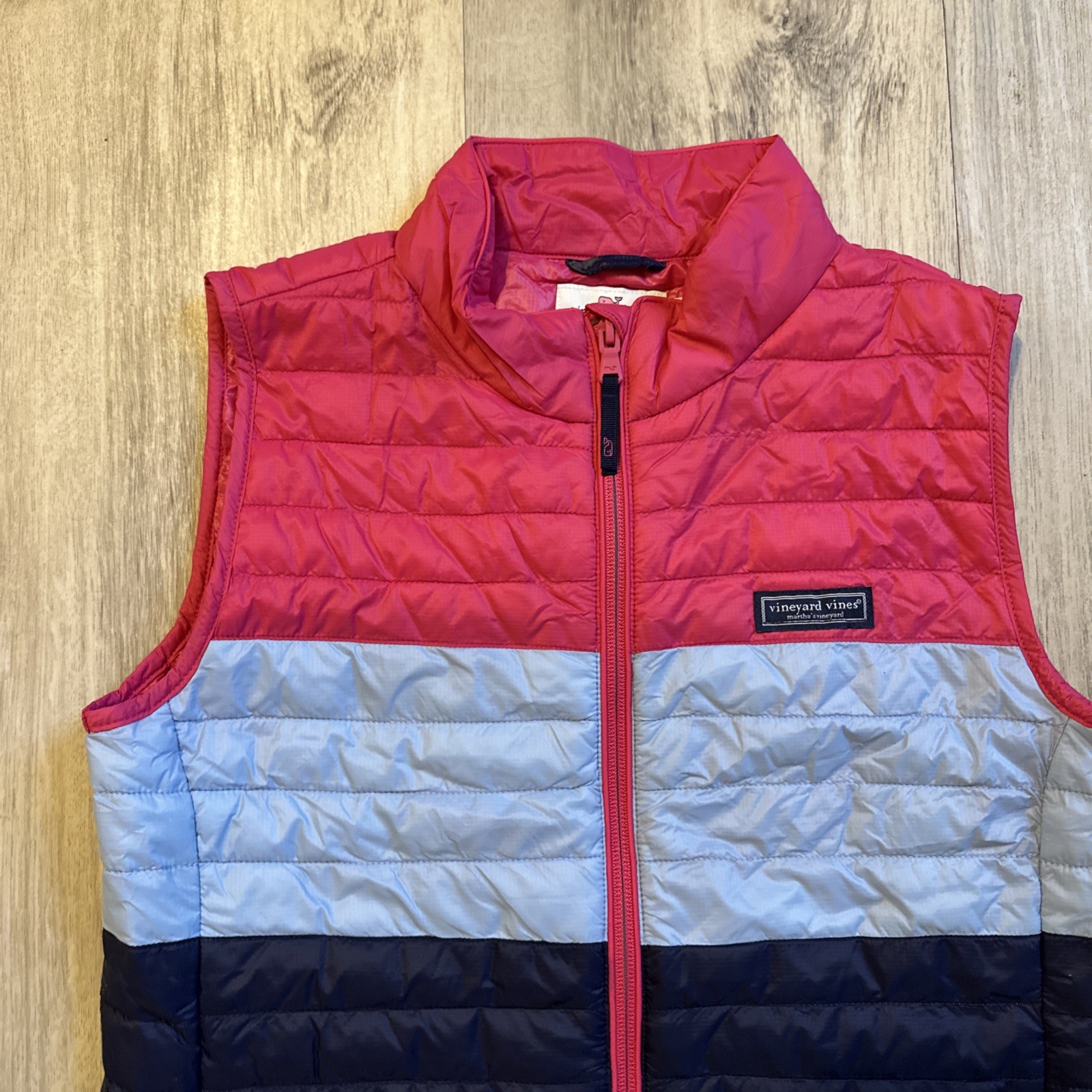 как выглядит J22 Vineyard Vines Girls Lg Primaloft Insulated Zip Up Colorblock Puffer Vest фото