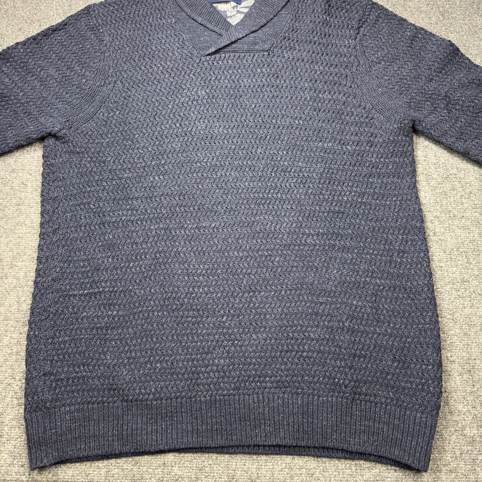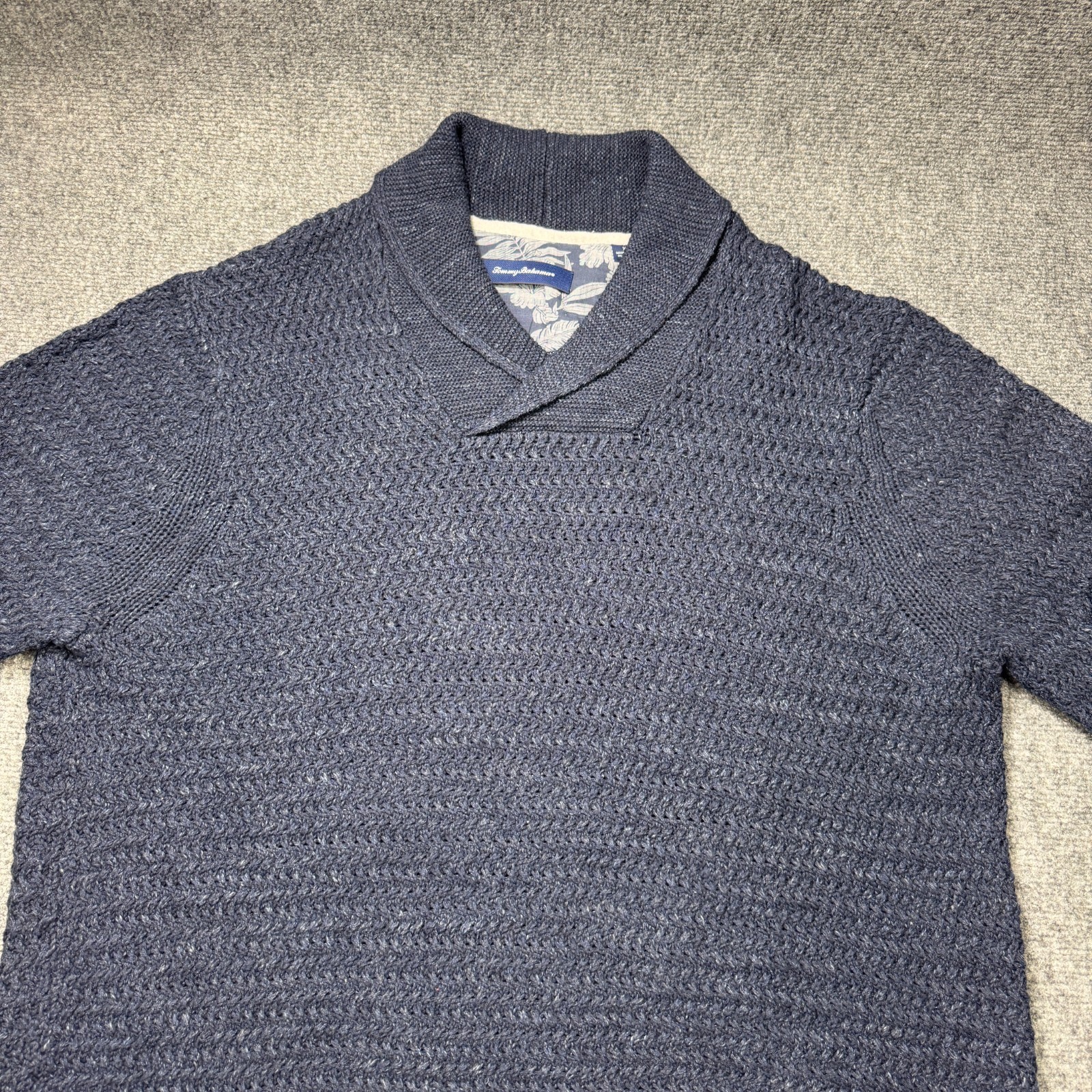 как выглядит Tommy Bahama Sweater Mens XL Tall Blue Shawl Collar Pullover Waffle Weave Knit фото