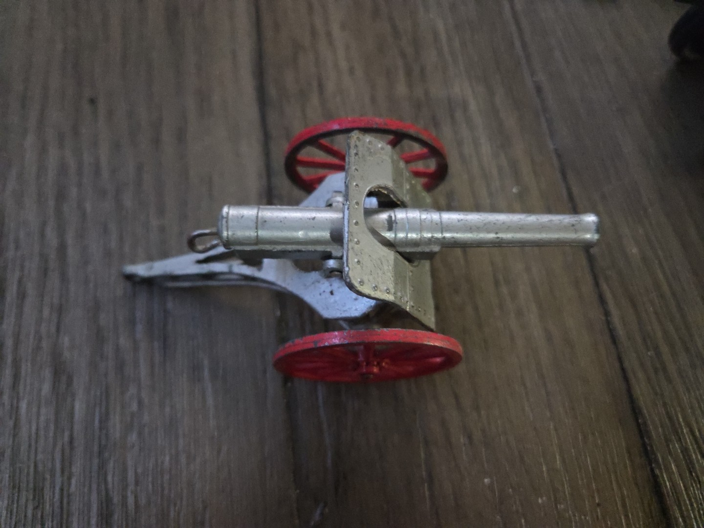 как выглядит Vintage Dimestore Barclay Spring-loaded Toy Cannon фото
