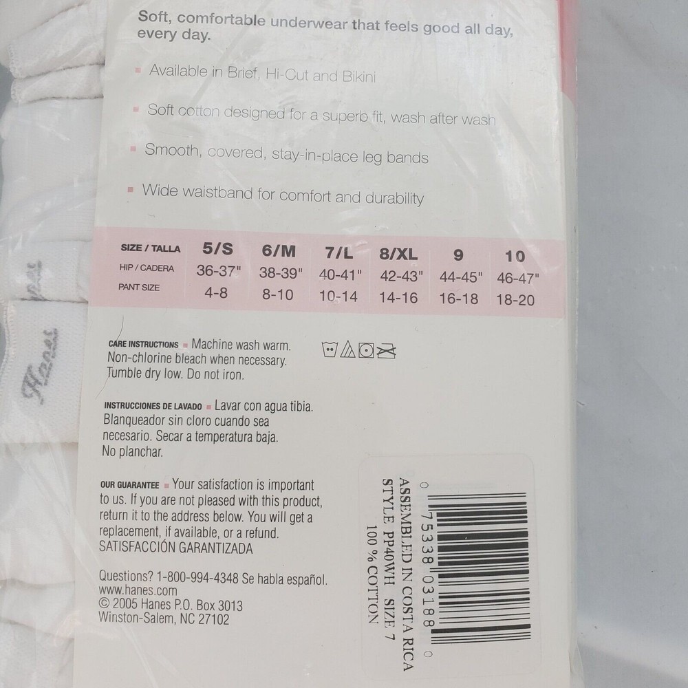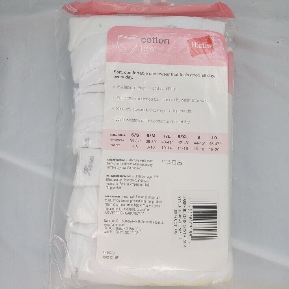 Women's Hanes Briefs Panties White Size 7 Large Cotton w/Cotton Liner 6 Pair NWT