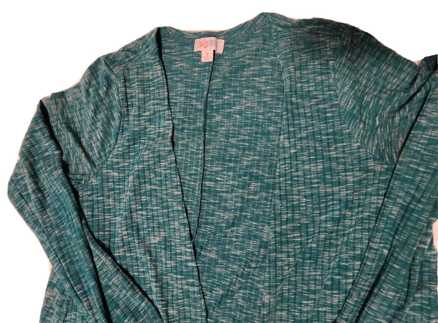 как выглядит Lularoe Sarah Cardigan Small Women Long Duster Turquoise Fairy Y2K Boho Grunge фото
